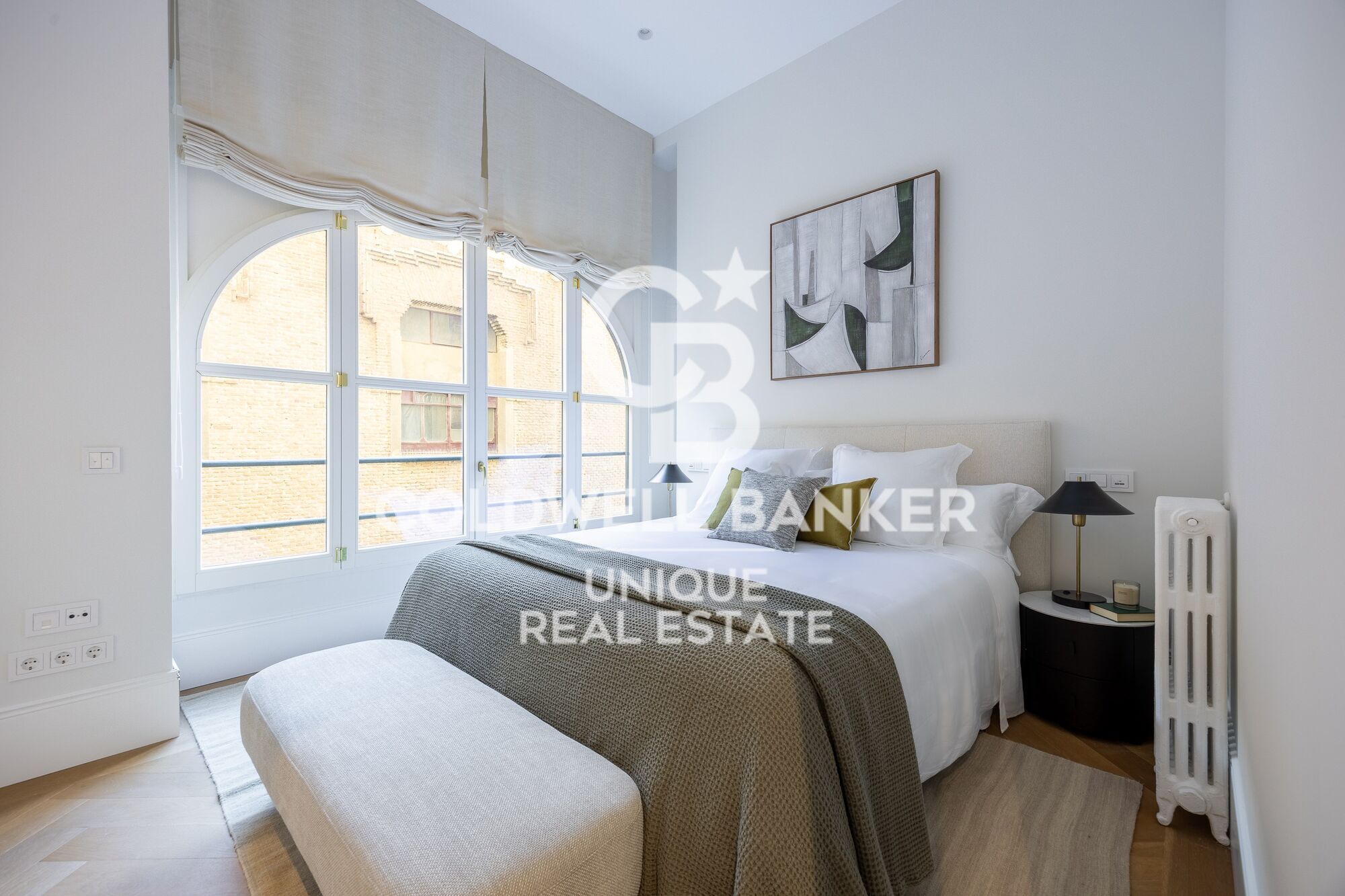 Découvrez un logement plein de charme en pleine Gran Via, où l'authenticité historique s'allie parfaitement à une rénovation moderne et soignée. Situé au cinquième étage, cet appartement a été restauré avec attention, préservant ses éléments d'origine tout en répondant aux exigences de la vie actuelle. Les plafonds hauts de 3,7 mètres offrent une luminosité exceptionnelle et une agréable sensation d'espace. Les sols en mosaïque hydraulique, soigneusement conservés, apportent couleur et caractère à chaque pièce. La rénovation complète marie matériaux contemporains et détails architecturaux classiques, créant une atmosphère harmonieuse et confortable. Grâce à sa double orientation, le logement bénéficie d'une lumière naturelle permanente et d'une excellente ventilation croisée. Les pièces principales donnent sur la Gran Via, offrant une vue privilégiée sur l'animation du centre-ville. À l'arrière, une terrasse couverte propose un véritable havre de paix, idéal pour se détendre, prendre un café ou profiter d'un moment de tranquillitéun avantage rare dans un emplacement aussi central. Chaque aspect de l'appartement a été pensé pour offrir confort, fonctionnalité et qualité de vie. Que vous aimiez recevoir sous les hauts plafonds ou vous isoler sur votre terrasse privée, ce logement réunit luminosité, charme et confort au cur de l'un des quartiers les plus emblématiques de Barcelone. Contactez-nous pour plus d'informations ou pour organiser une visite. #ref:CBES2747 (2)