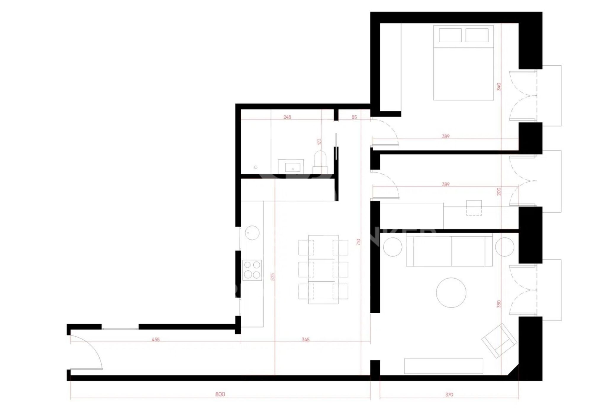 Le logement dispose de deux chambres, d'une salle de bain, d'un salon lumineux et d'une cuisine entièrement équipée avec des appareils électroménagers intégrés. Les armoires encastrées offrent un excellent espace de rangement supplémentaire, tandis que les balcons extérieurs baignent l'appartement de lumière naturelle, créant une atmosphère chaleureuse et accueillante.