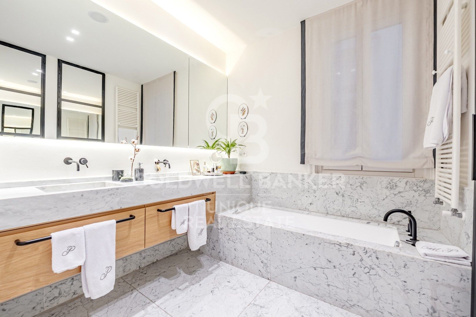 Il s'agit d'une propriété vraiment unique et exclusive, un appartement qui combine parfaitement le charme de l'architecture classique de Madrid avec une rénovation complète de design contemporain, exécutée avec des matériaux et des finitions de la plus haute qualité.