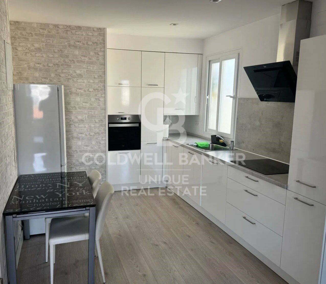 La cuisine américaine, intégrée à la salle à manger, s'ouvre sur un salon spacieux avec de grandes fenêtres double vitrage et insonorisées, offrant des vues incomparables sur la ville.