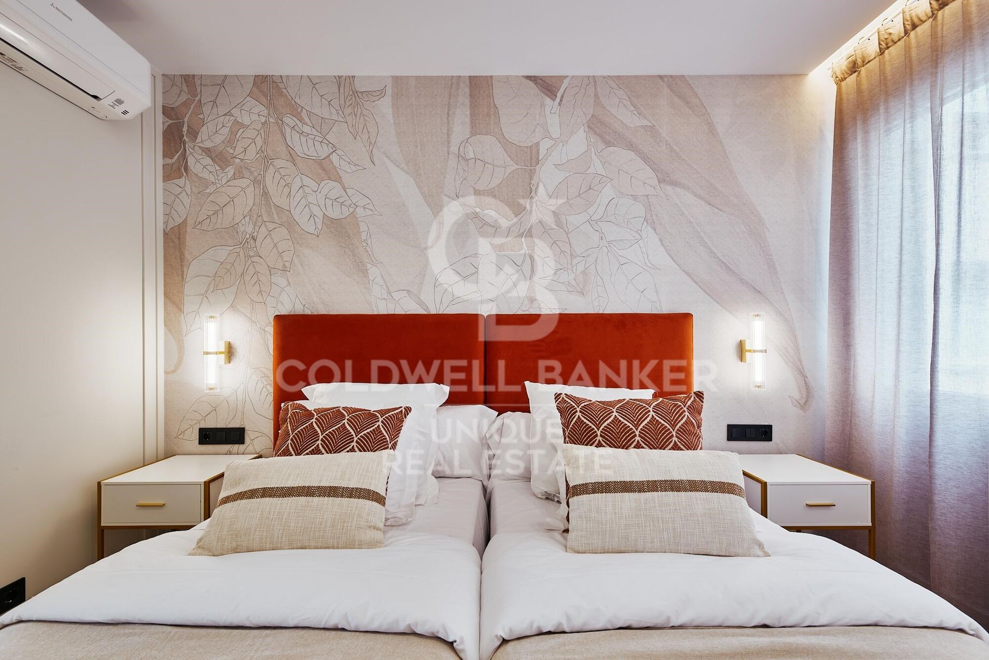 Situé au quatrième étage, orienté vers l'intérieur, dans un immeuble avec ascenseur construit en 1967, le bien dispose de 133 m² cadastraux et 89 m² construits, répartis de manière efficace en deux chambres et deux salles de bains. Il est vendu entièrement meublé, avec une cuisine équipée au design fonctionnel et contemporain.