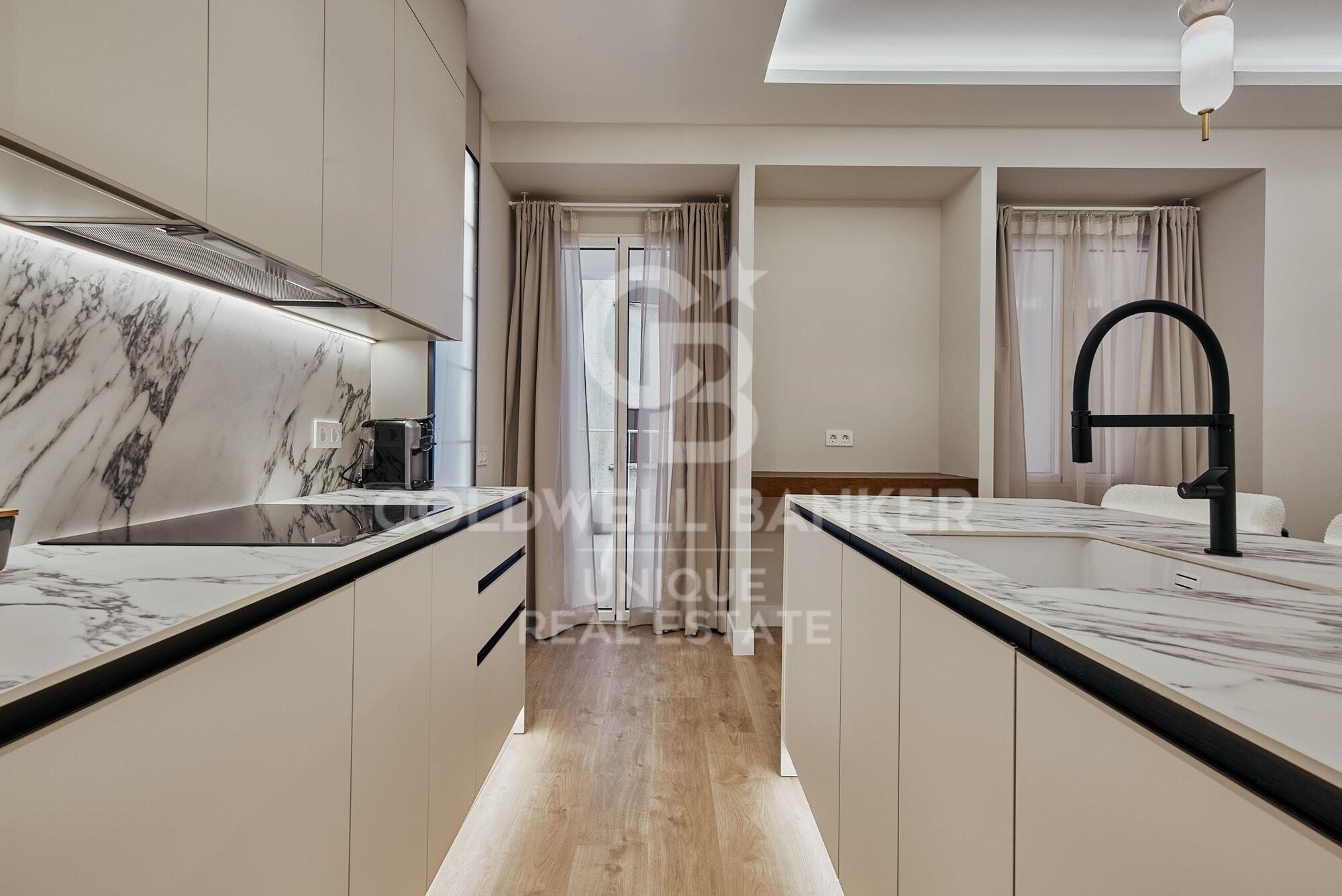 La cuisine entièrement équipée s'intègre dans un espace fonctionnel pensé pour le quotidien. L'appartement est livré meublé et dispose d'un chauffage communautaire et de la climatisation, garantissant un confort optimal tout au long de l'année.