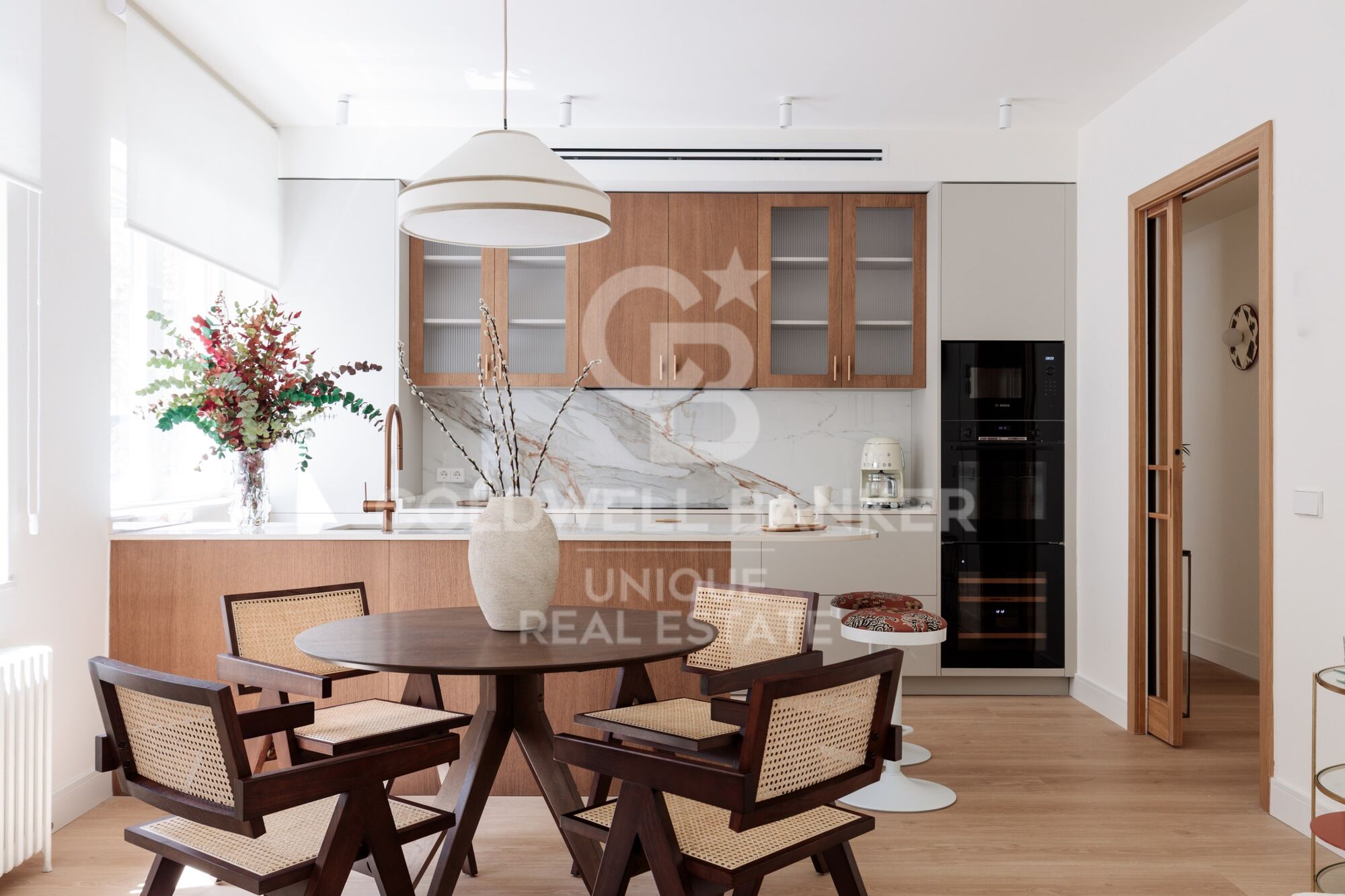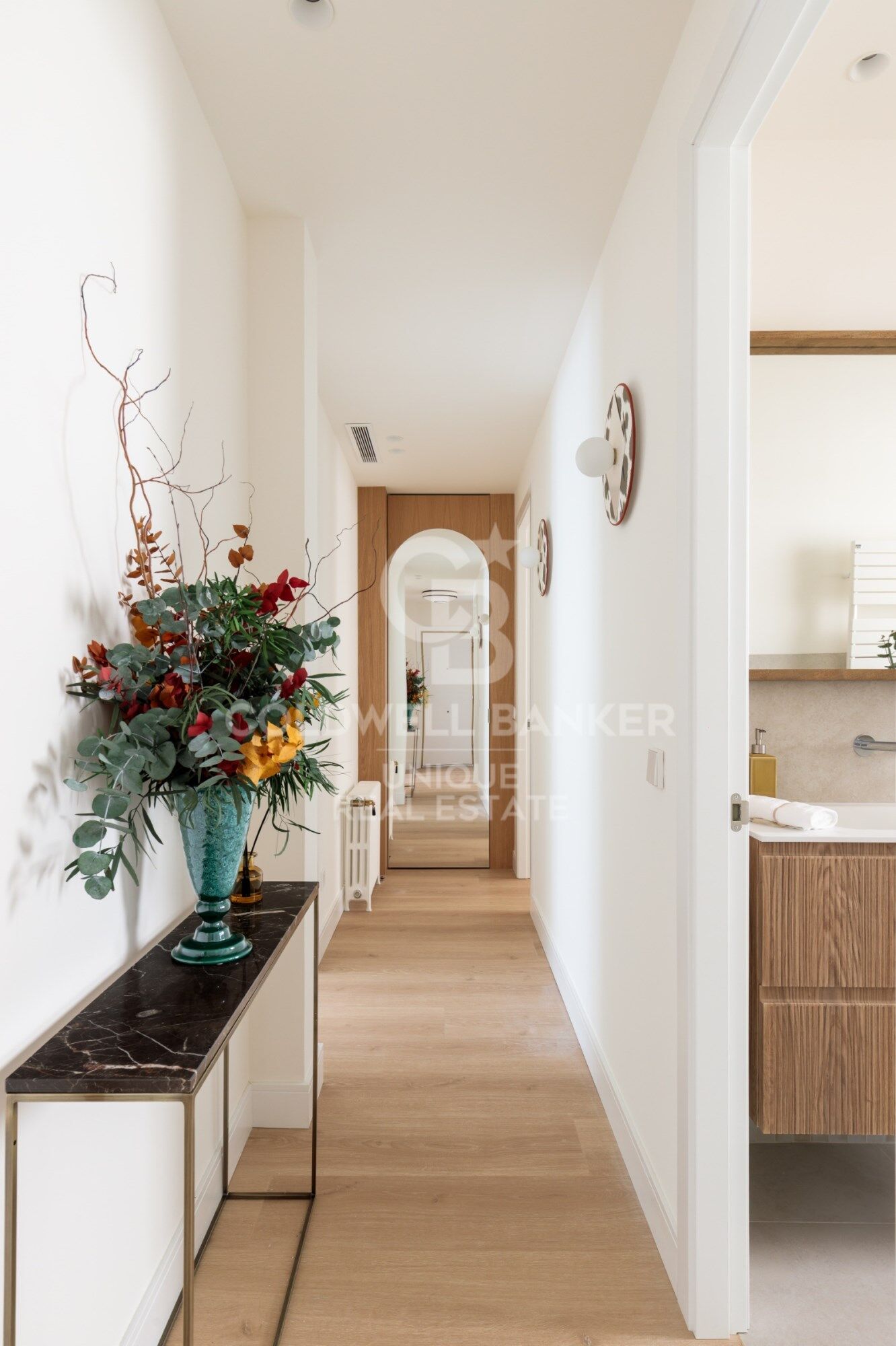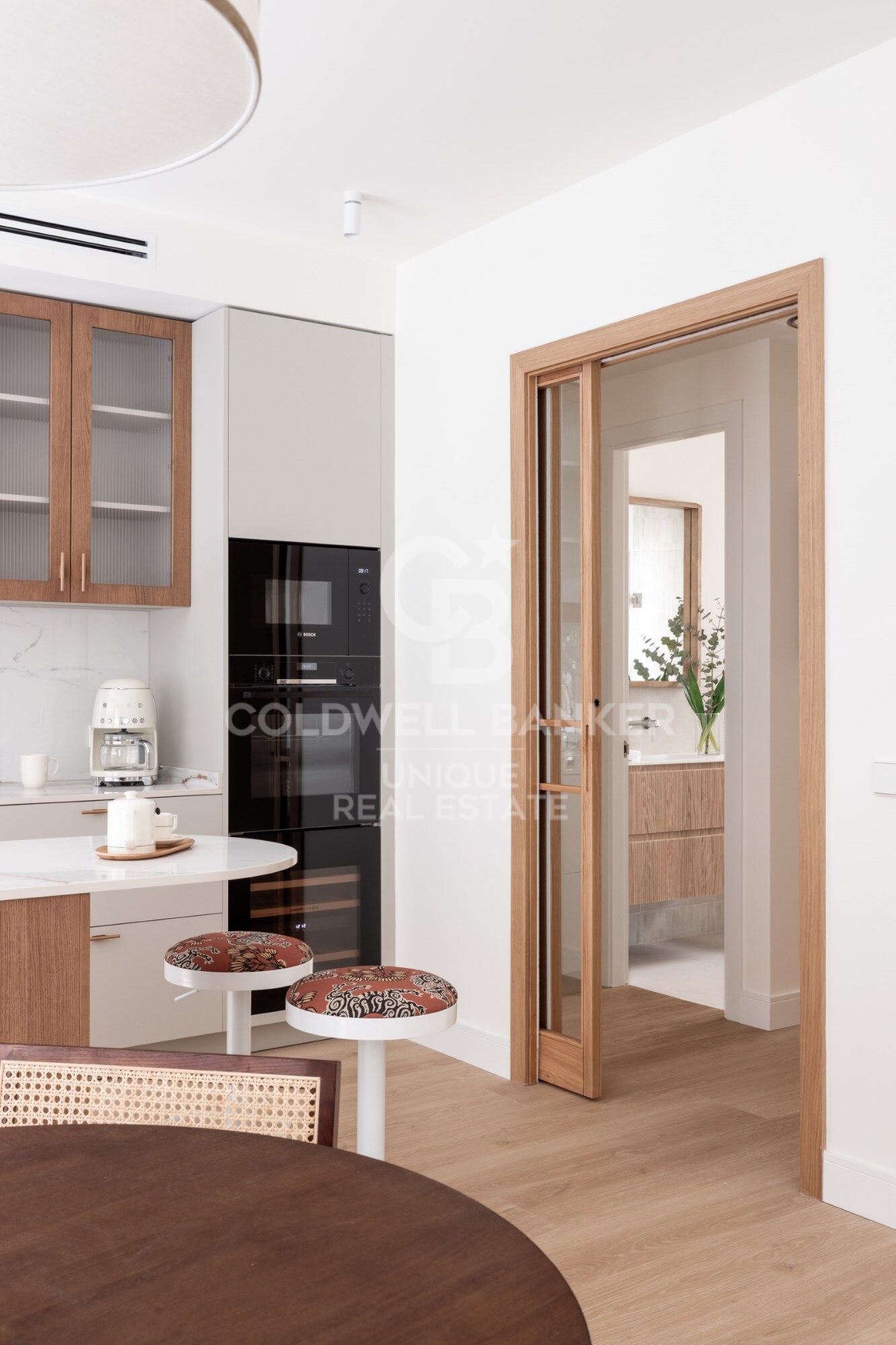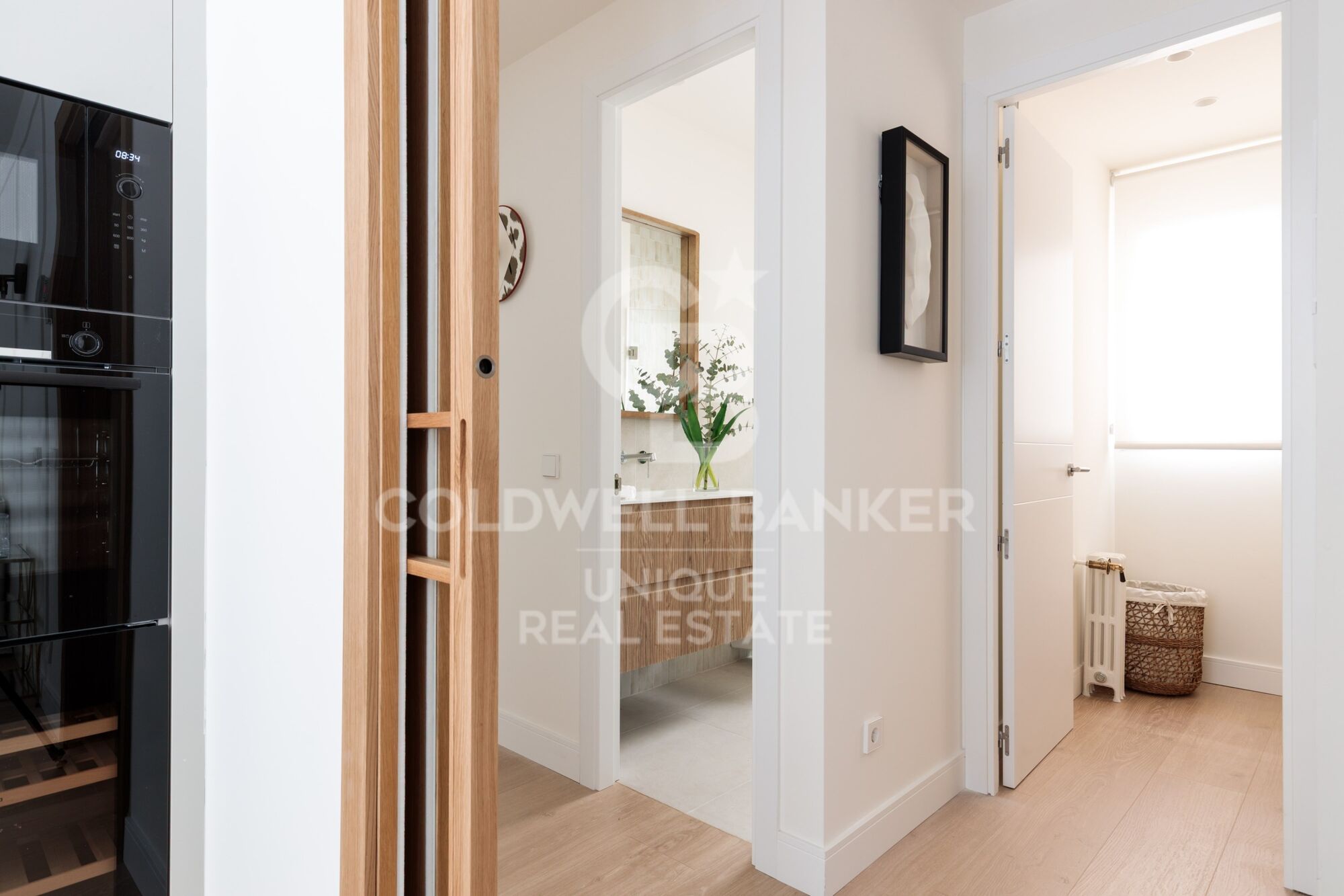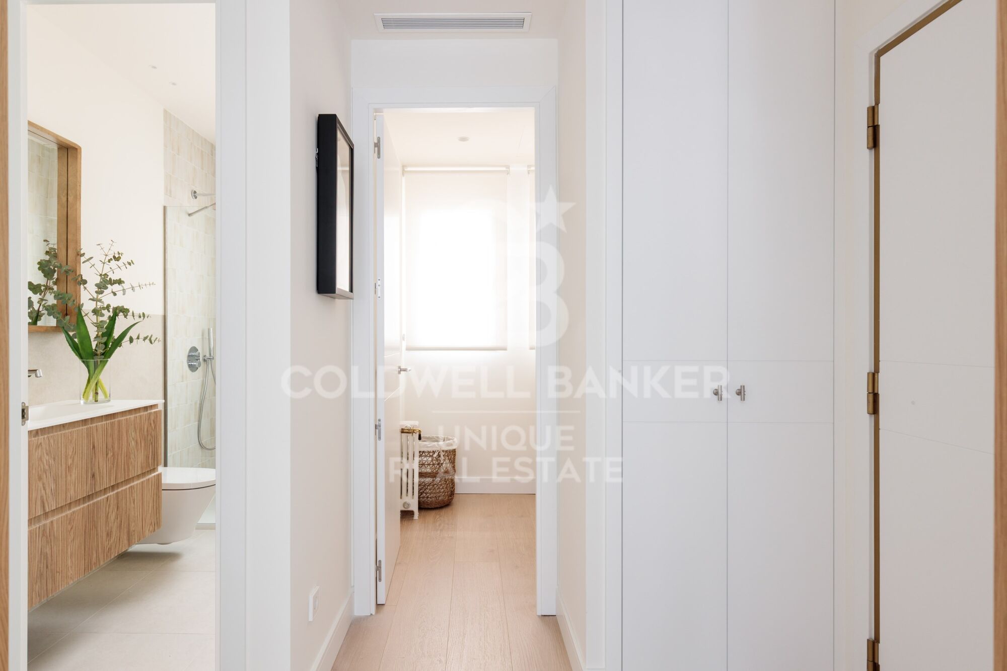Les armoire encastrées sur mesure, l'utilisation intelligente de chaque mètre carré et l'harmonie visuelle entre les pièces reflètent un projet réalisé avec des critères et une sensibilité.