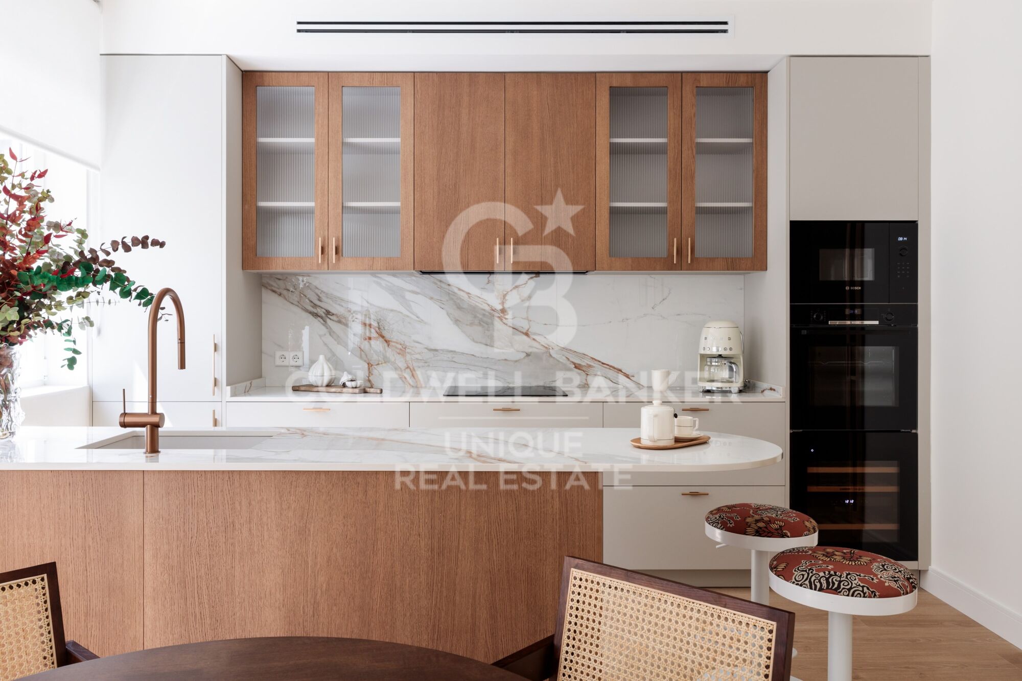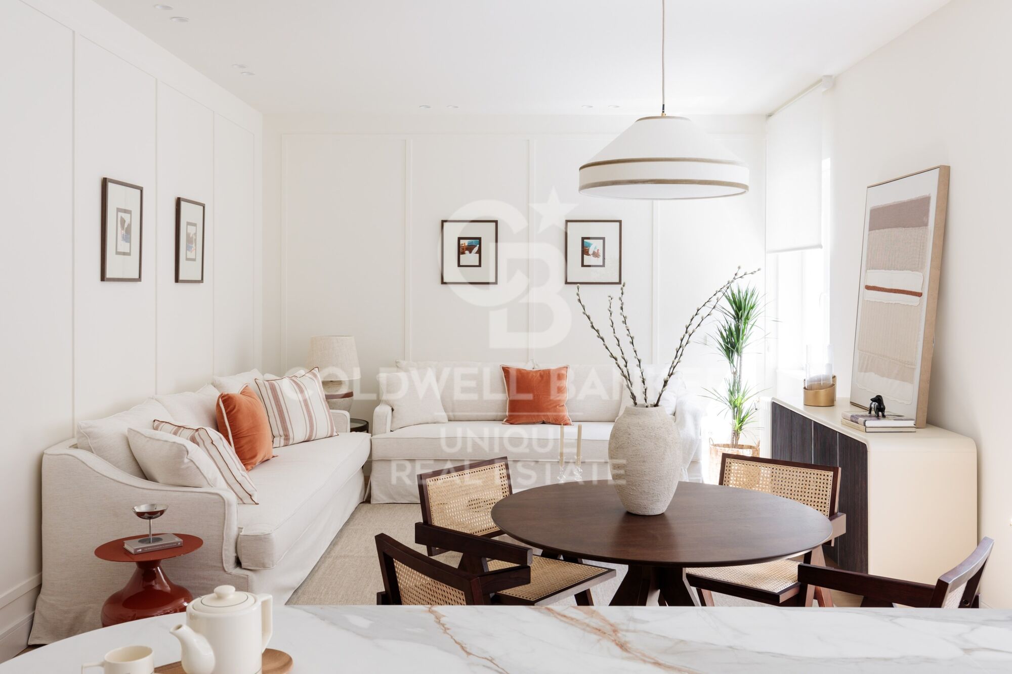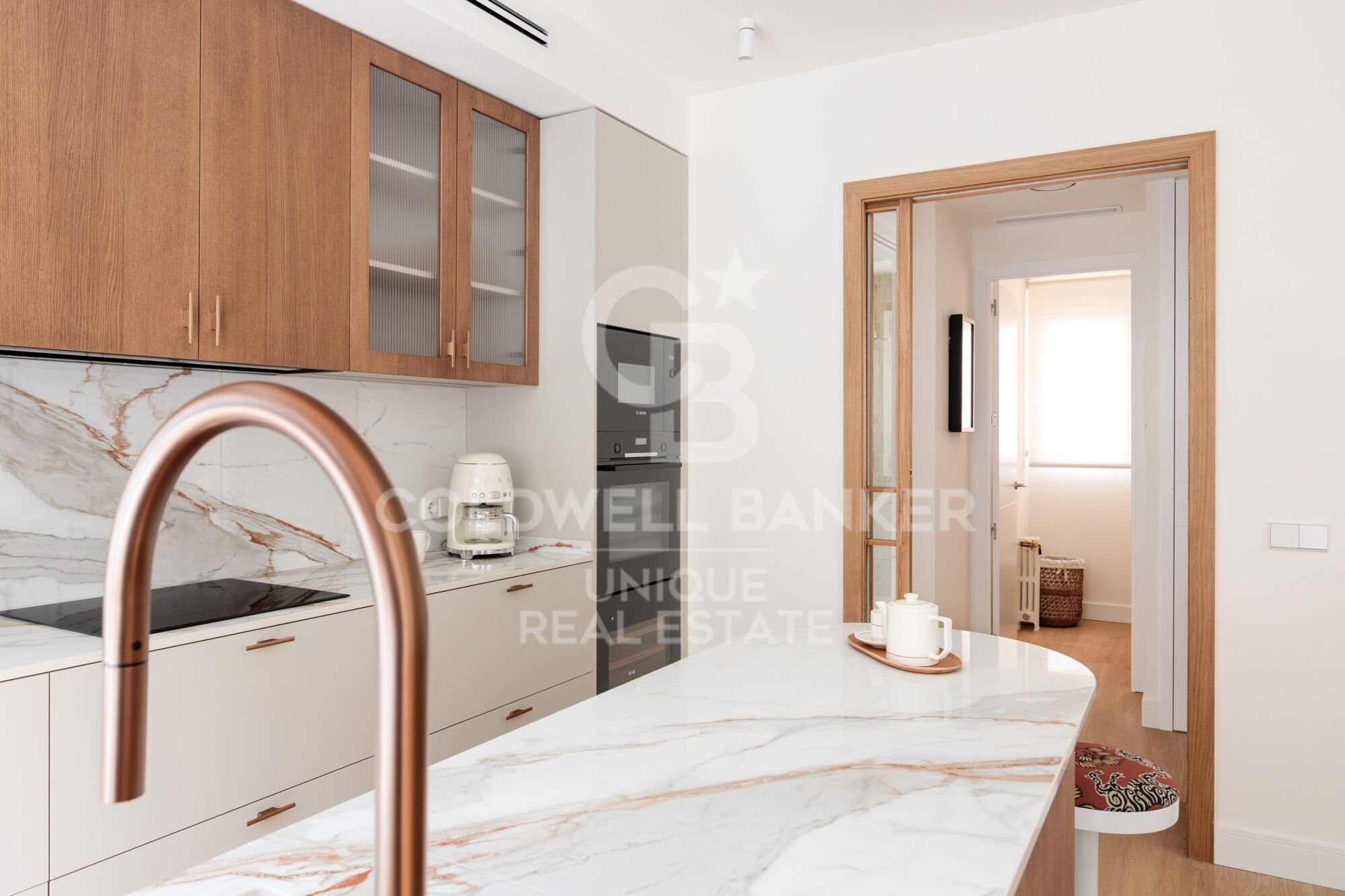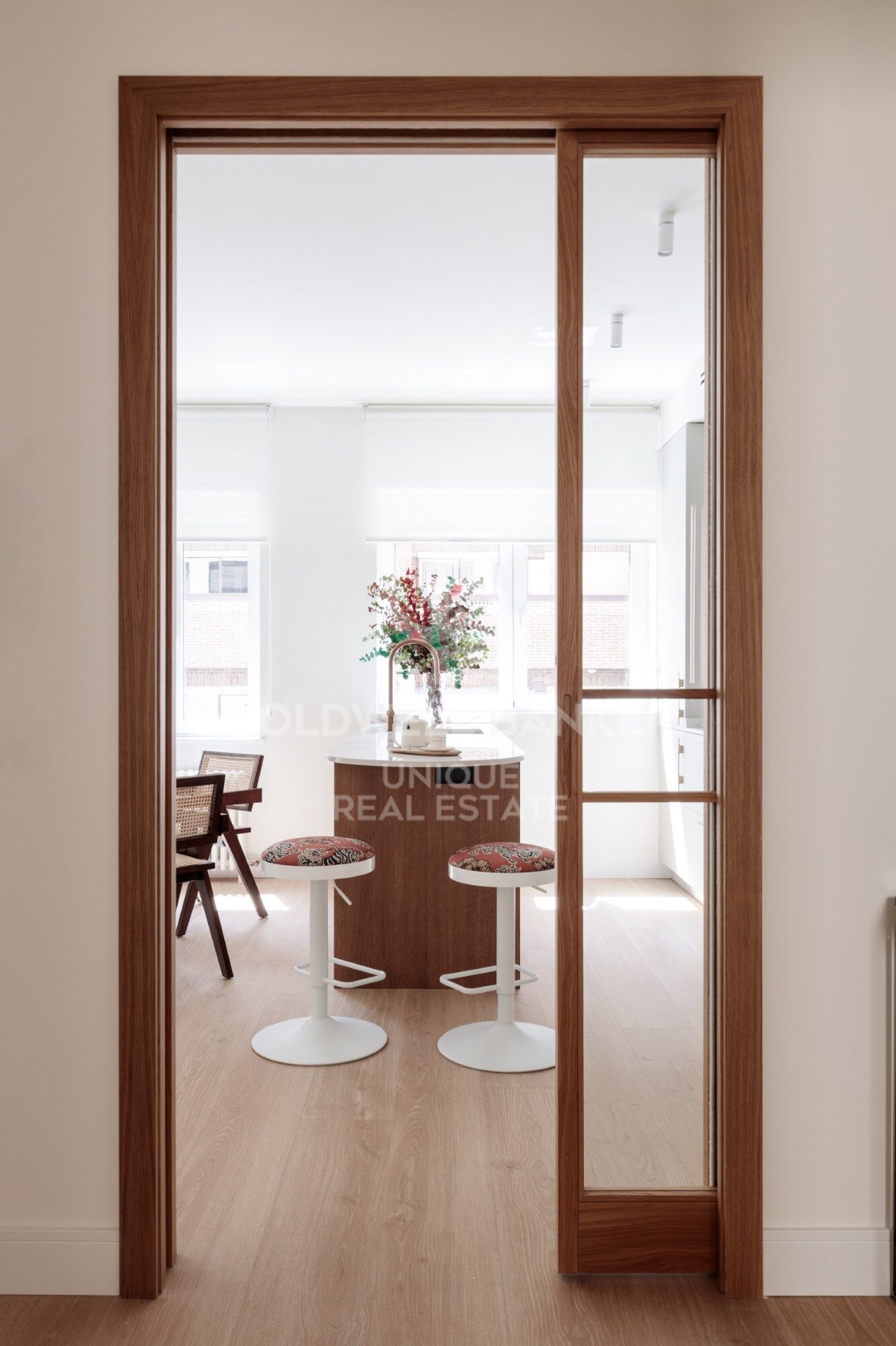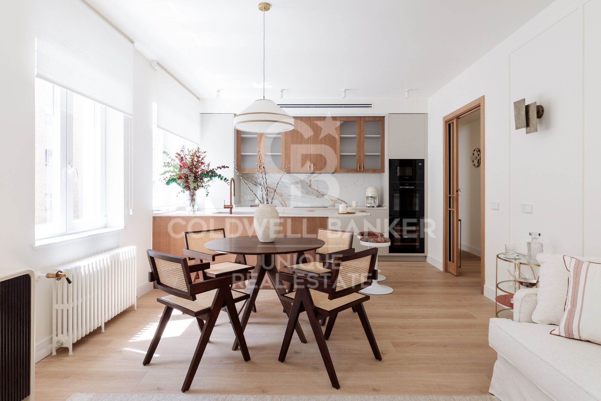 Les armoire encastrées sur mesure, l'utilisation intelligente de chaque mètre carré et l'harmonie visuelle entre les pièces reflètent un projet réalisé avec des critères et une sensibilité.