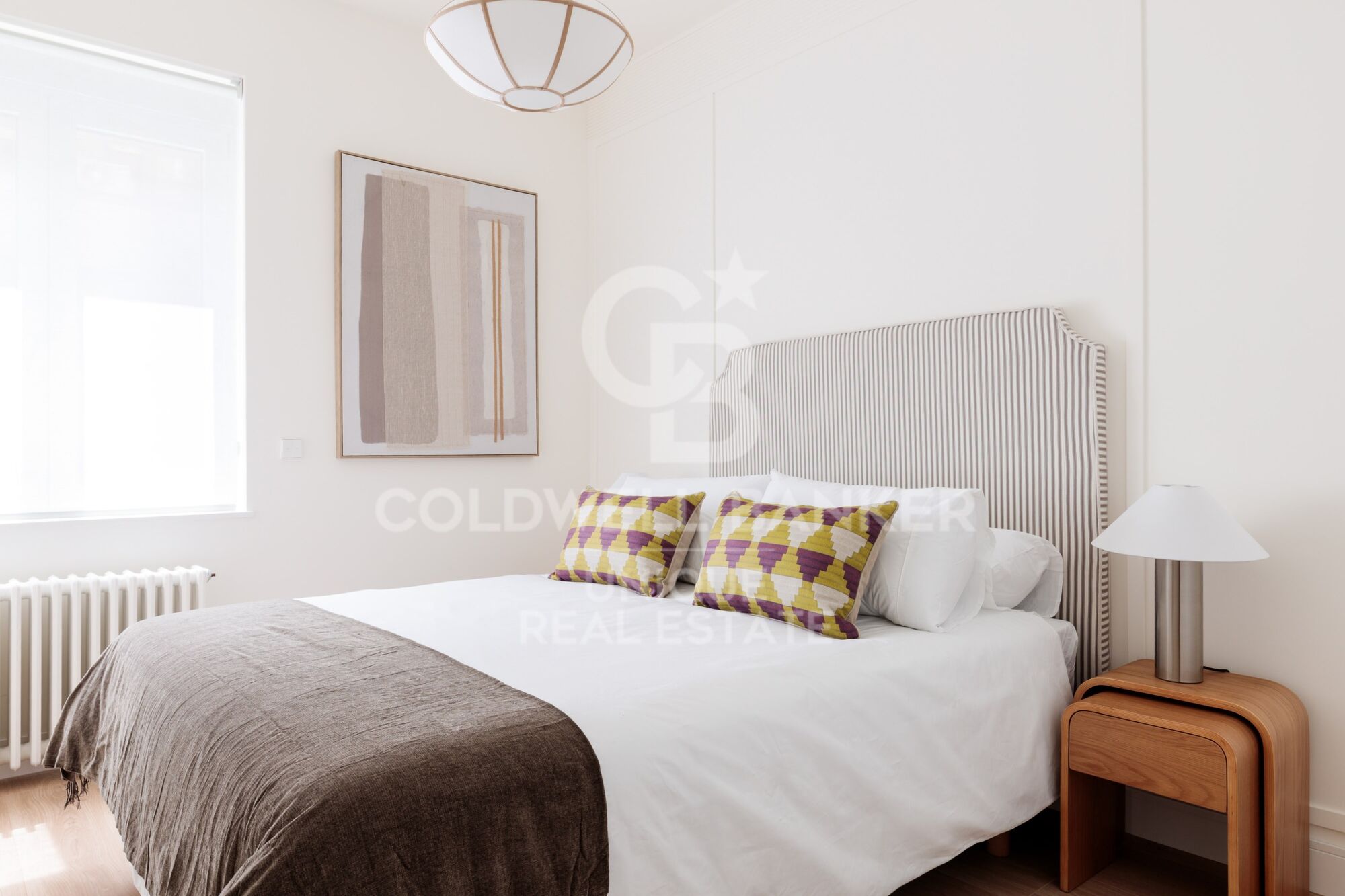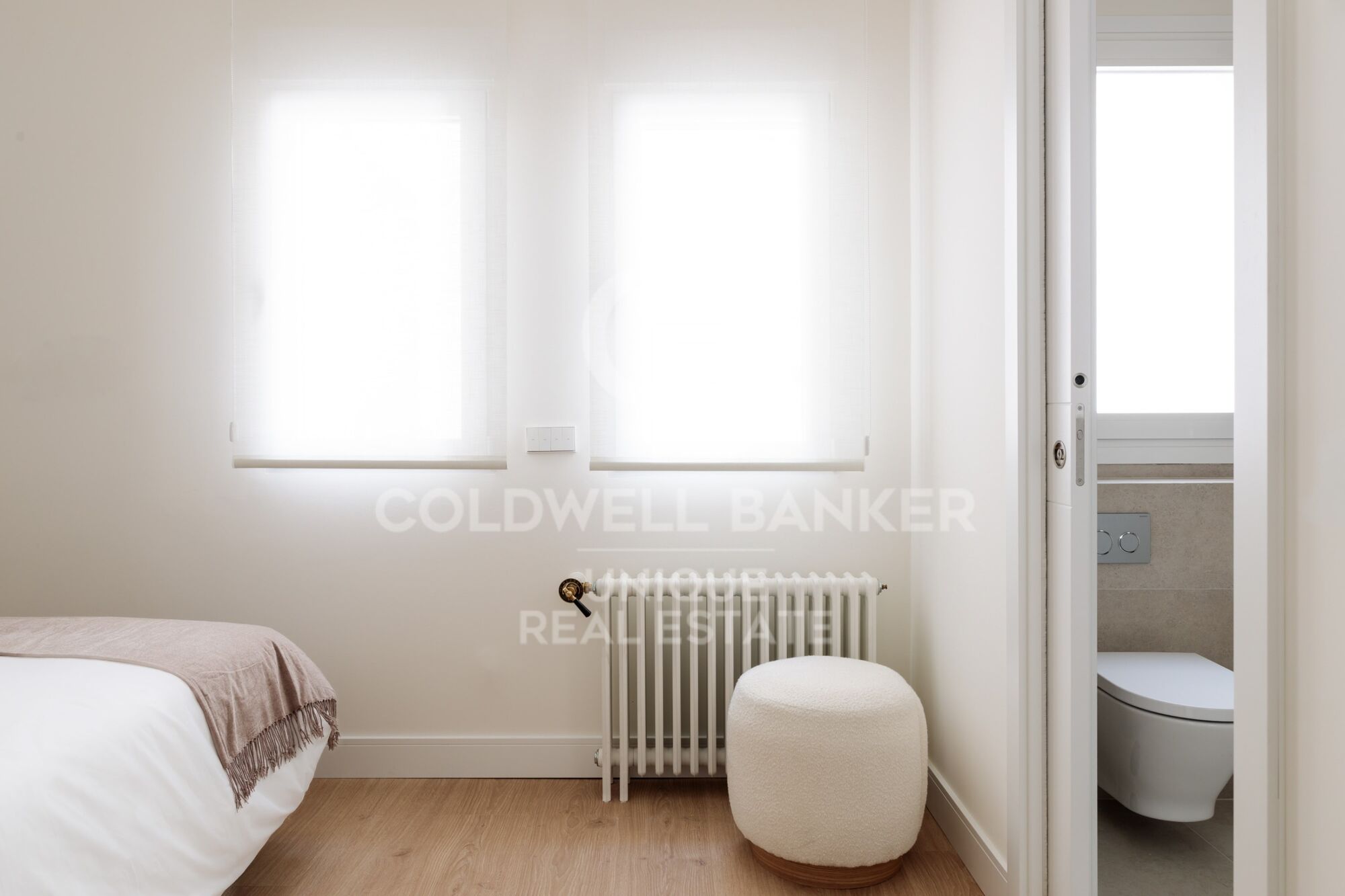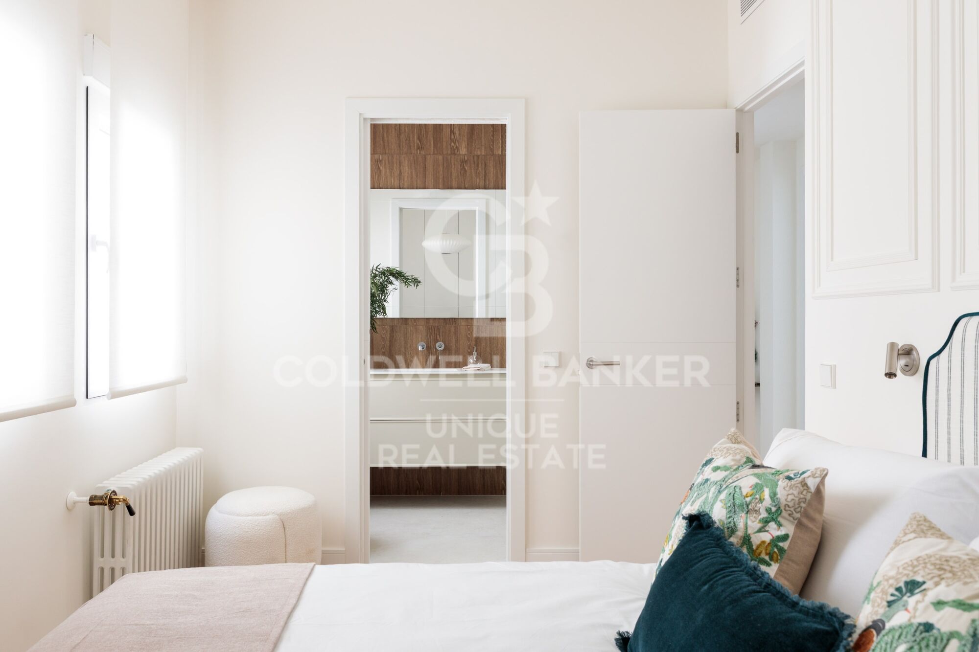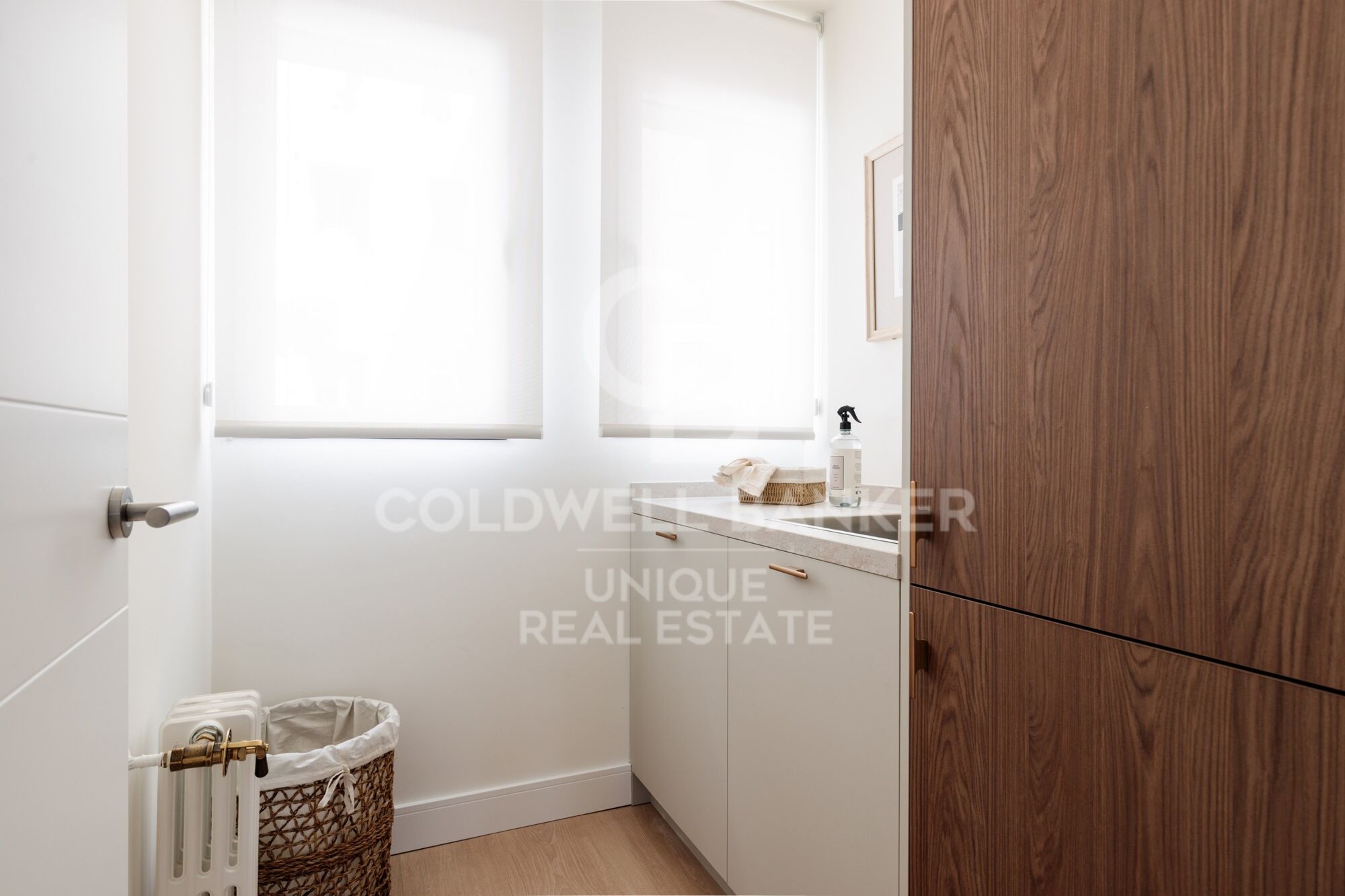 Il dispose de deux grandes chambres doubles, dont une extérieure, de deux salles de bains complètes - dont une en salle de bain attenante - et d'une buanderie séparée. Le salon-salle à manger, avec une cuisine intégrée, est conçu comme un espace ouvert, élégant et fonctionnel, particulièrement lumineux car il possède trois grandes fenêtres.