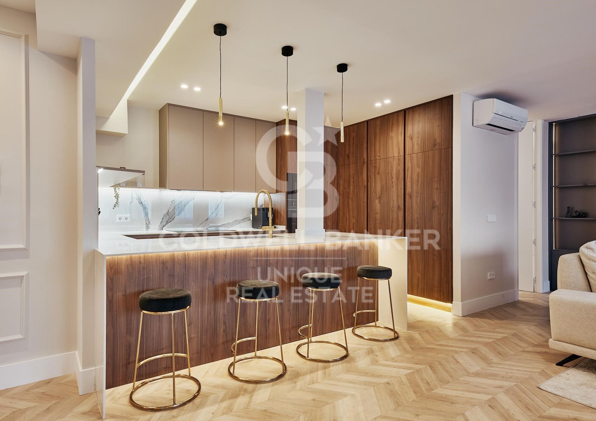Le bien dispose d'une terrasse privée, d'une cuisine entièrement équipée, d'un WC supplémentaire et bénéficie d'une orientation extérieure, garantissant des espaces lumineux et spacieux. Conçu pour ceux qui recherchent élégance, confort et fonctionnalité, il est entièrement meublé et prêt à emménager sans aucun souci.