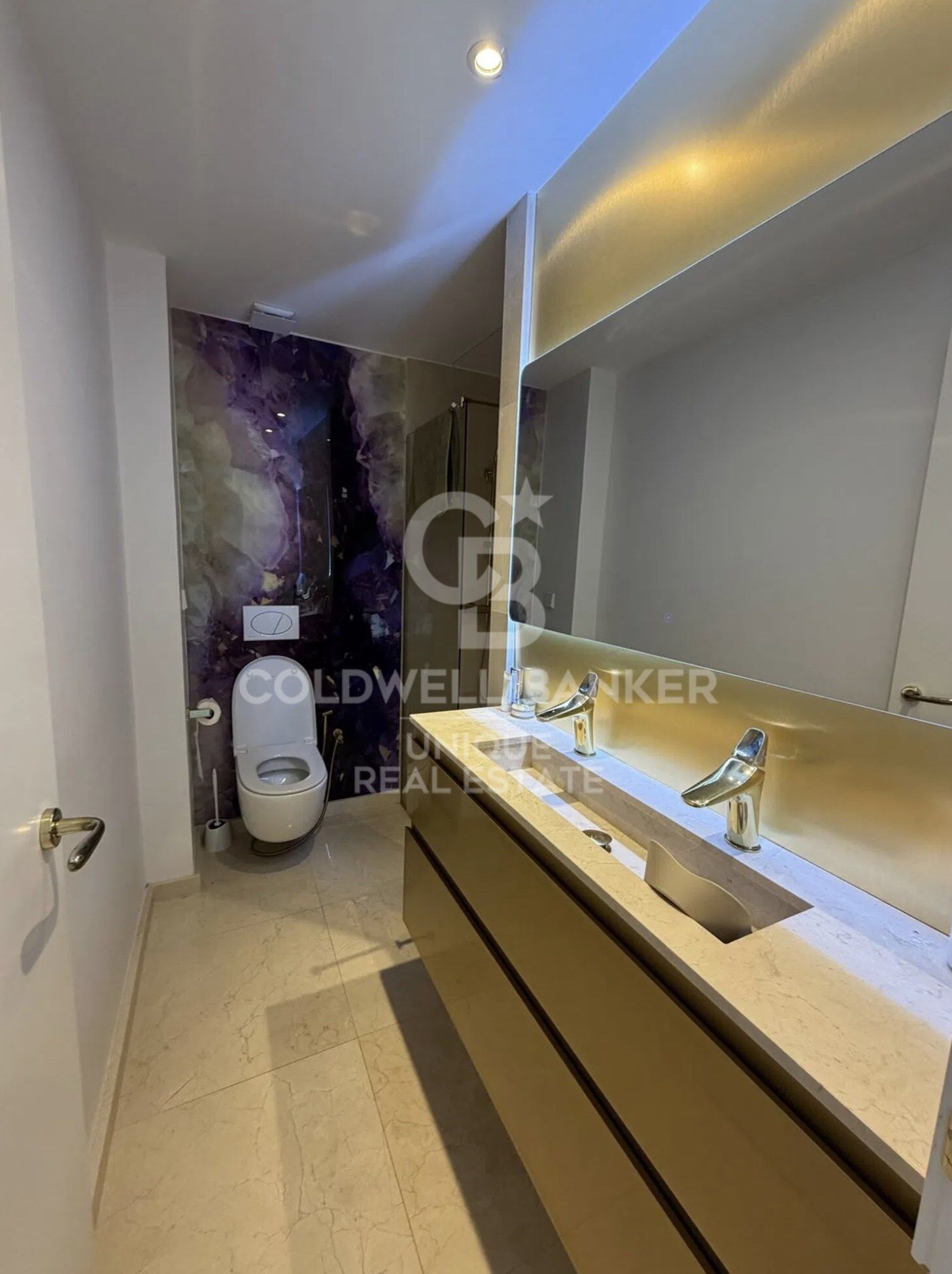 La partie jour comprend un vaste salon avec accès direct à une magnifique et confortable terrasse de 16 m², un espace privilégié permettant de profiter de la lumière naturelle tout au long de la journée. La cuisine entièrement équipée se distingue par ses matériaux design et ses électroménagers de haute qualité. Elle dispose également d'une buanderie indépendante avec espace pour lave-linge et sèche-linge.