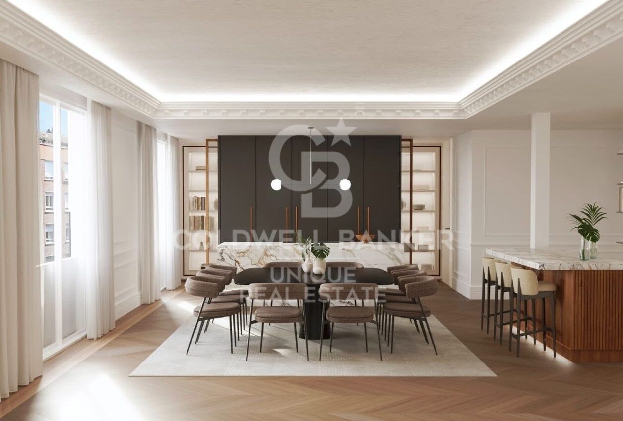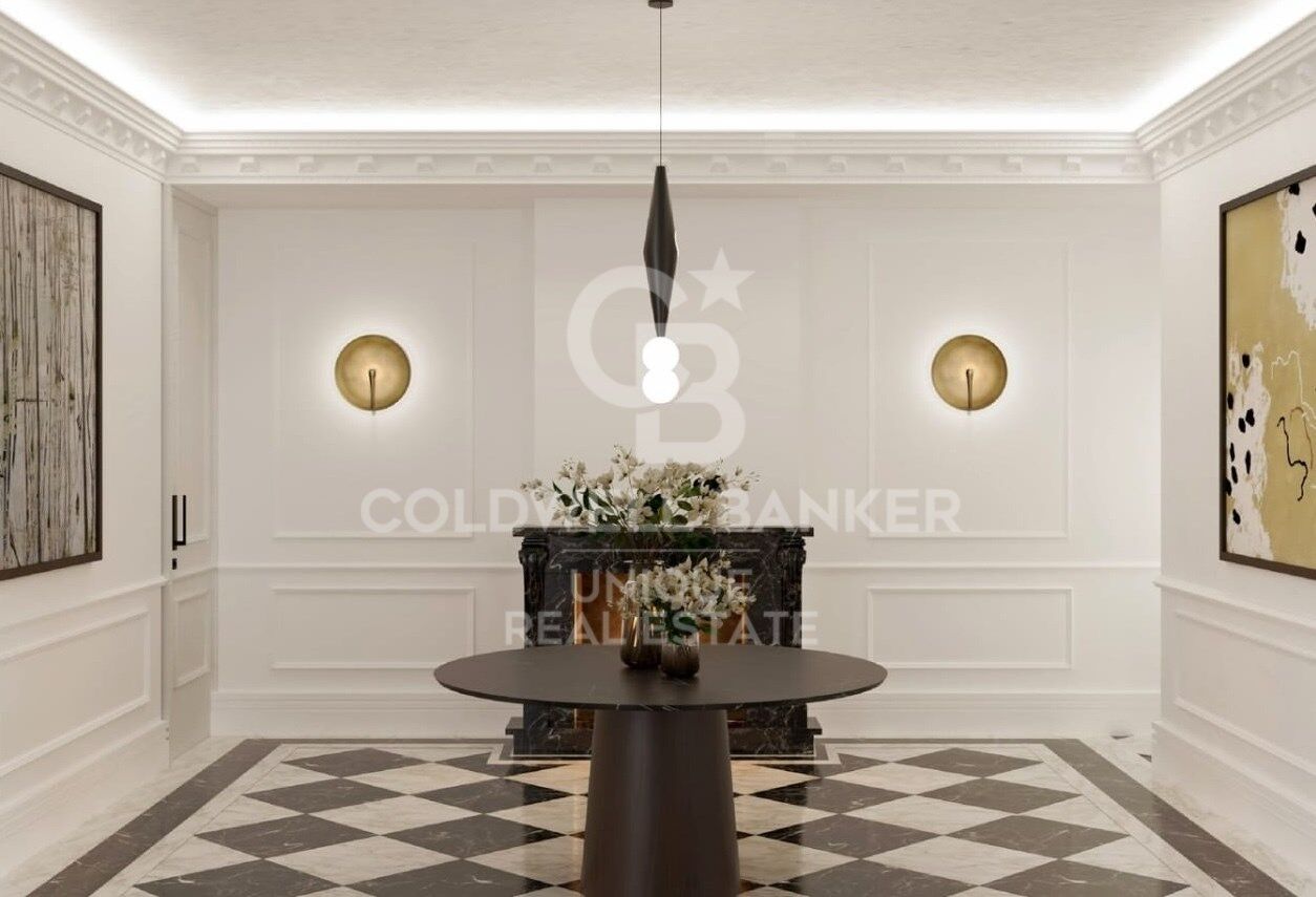 Coldwell Banker Unique présente une maison extraordinaire située dans un immeuble classique dans le prestigieux Barrio de Recoletos, l'un des quartiers les plus recherchés et les plus exclusifs de Madrid. Le bâtiment se distingue par son élégant portail carrossable et ses détails architecturaux d'époque, combinant un charme majestueux avec une rénovation intérieure complète de design contemporain.