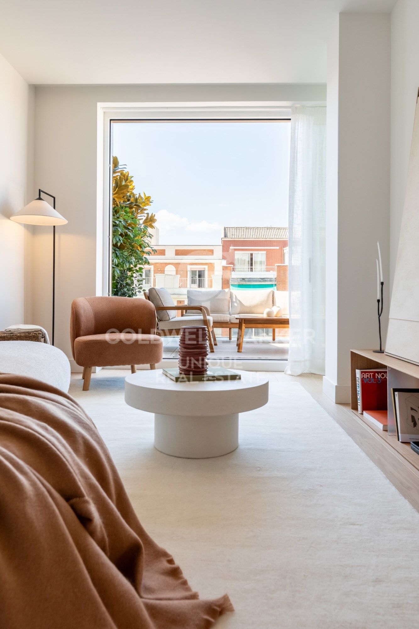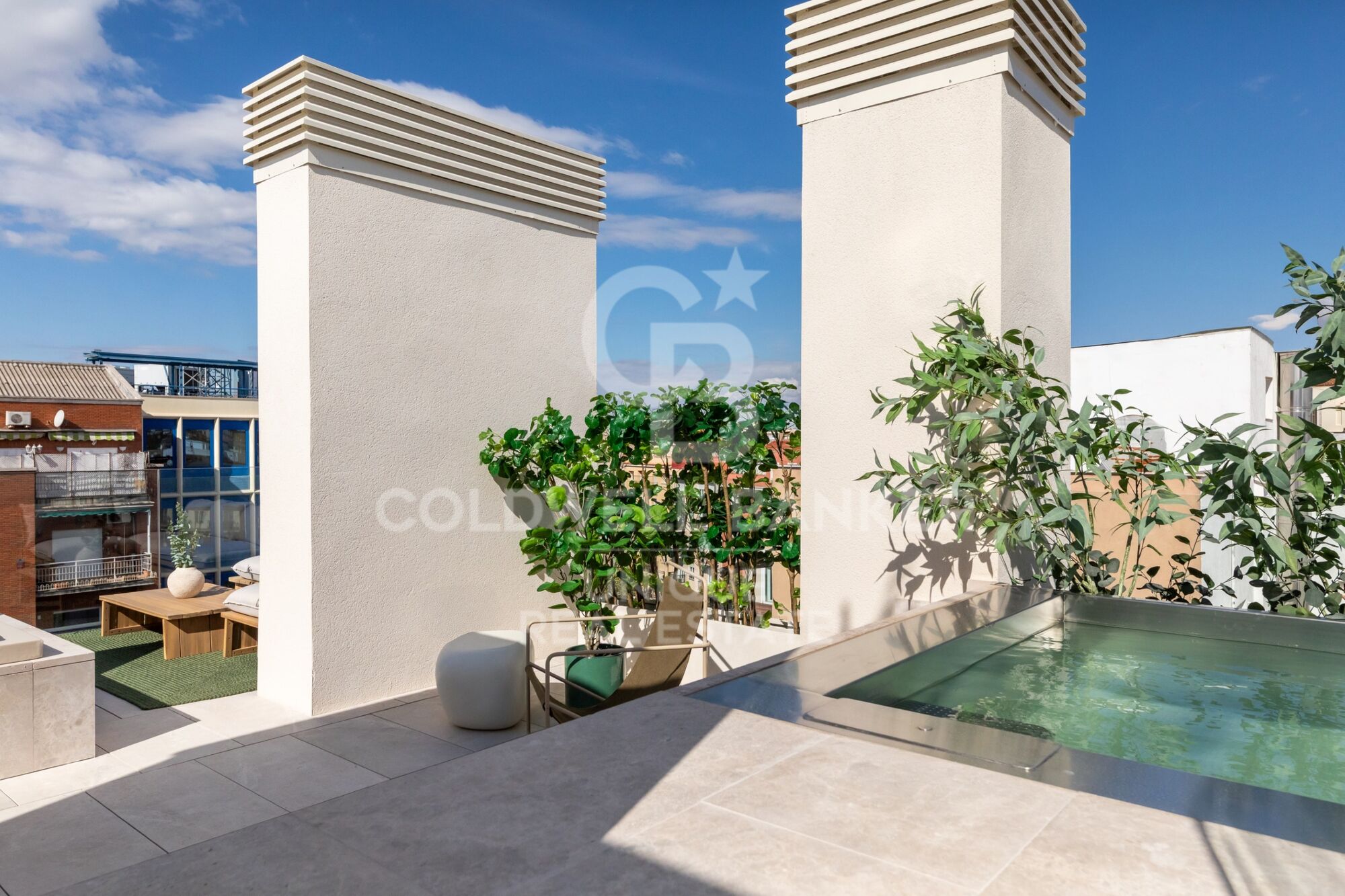 Dans le Madrid le plus authentique, tradition et modernité se rejoignent pour donner naissance à un immeuble au design cosmopolite et au style bohème, situé rue Santa Engracia, le quartier le plus tendance de Chamberí.