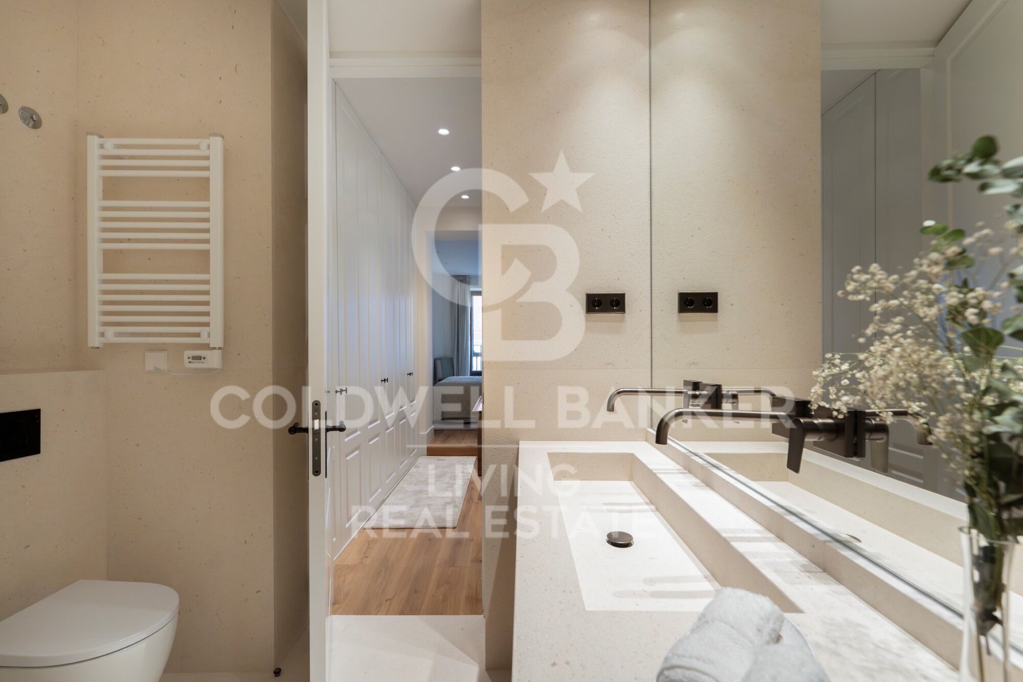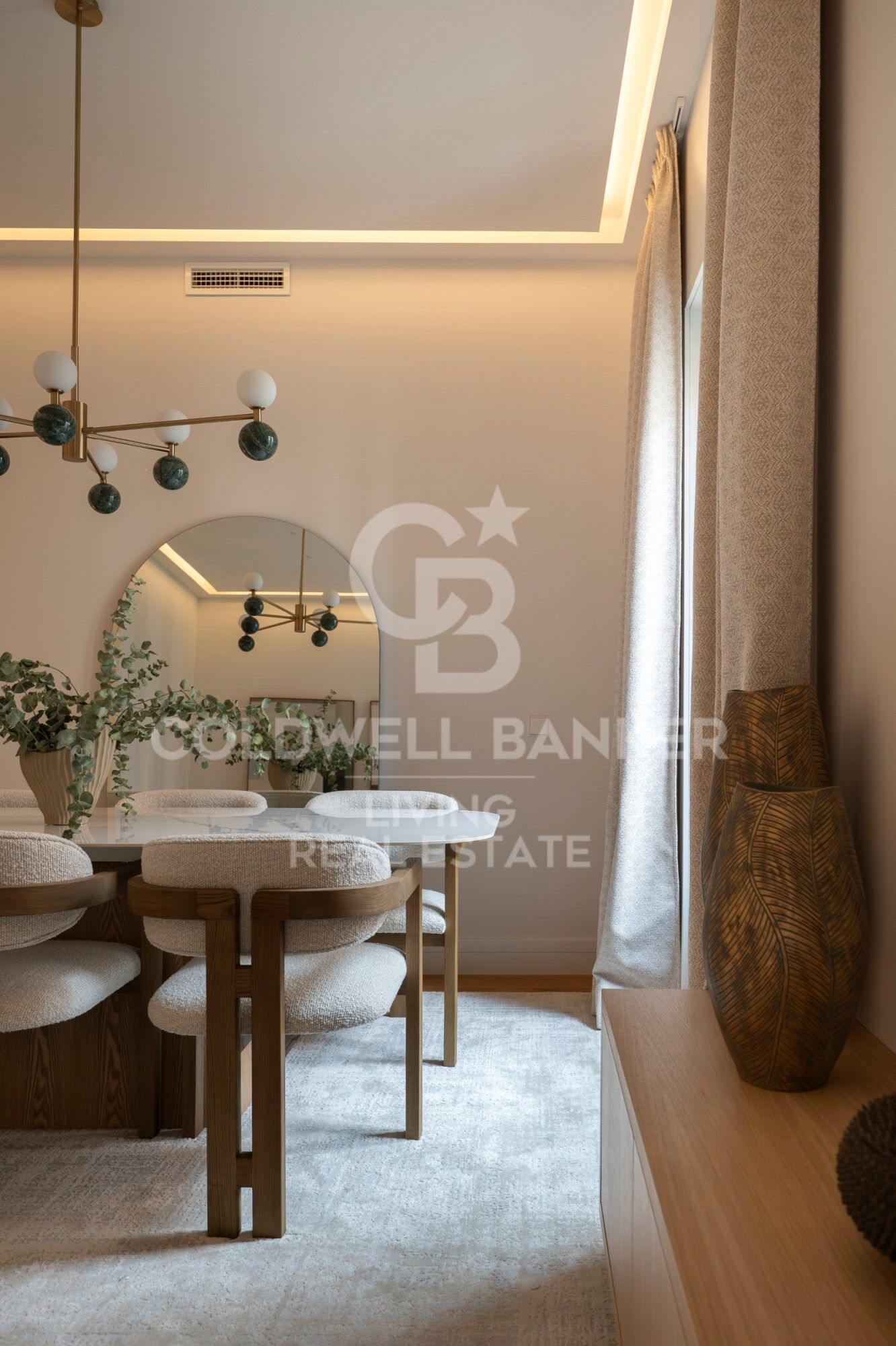 La vivienda, distribuida con gran coherencia y elegancia, se entrega totalmente decorada, lista para entrar a vivir, con una selección cuidada de materiales nobles, iluminación diseñada a medida y carpinterías artesanales de suelo a techo.