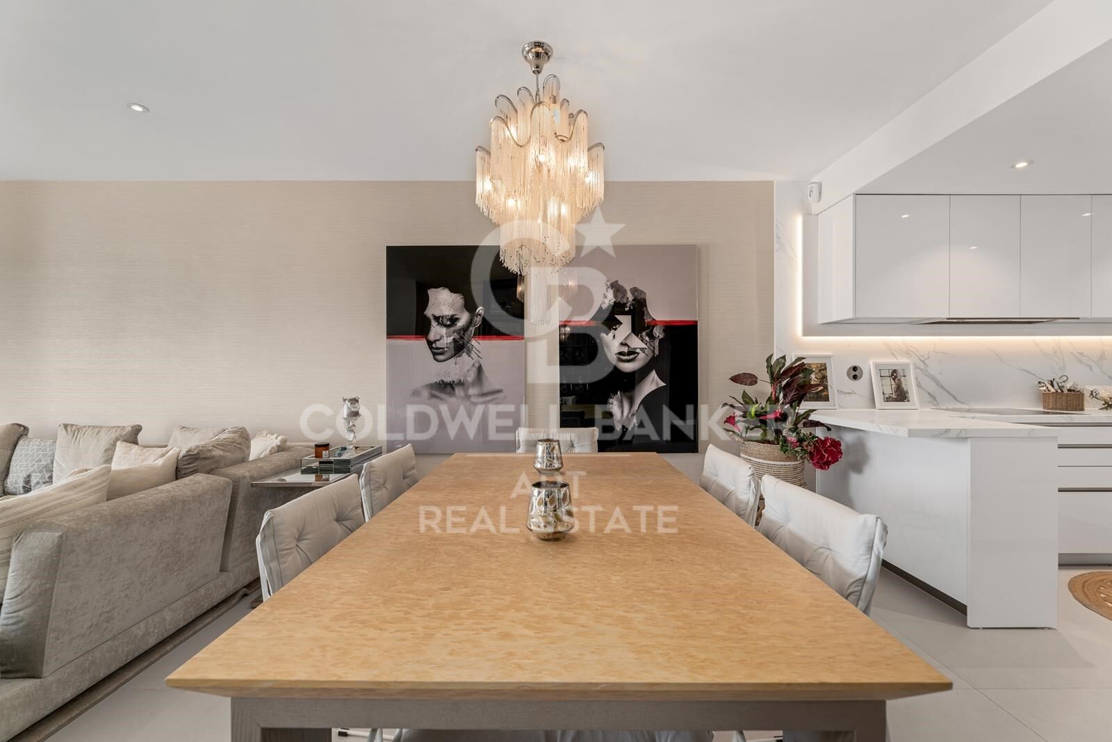 Le bien comprend trois chambres et deux salles de bains, dont une suite parentale raffinée avec accès privé à une vaste terrasse. L'espace salon-salle à manger, spacieux et lumineux, s'ouvre harmonieusement sur une cuisine moderne entièrement équipée avec des appareils haut de gamme. De grandes baies vitrées laissent entrer une abondante lumière naturelle et renforcent le lien avec l'extérieur.