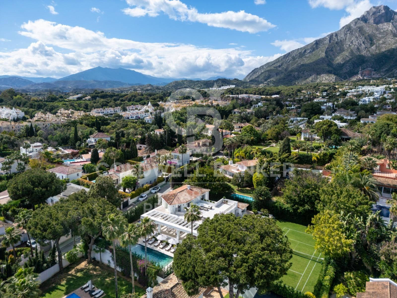 Villa neuve avec court de tennis et vue montagne à Mille d'Or, Marbella