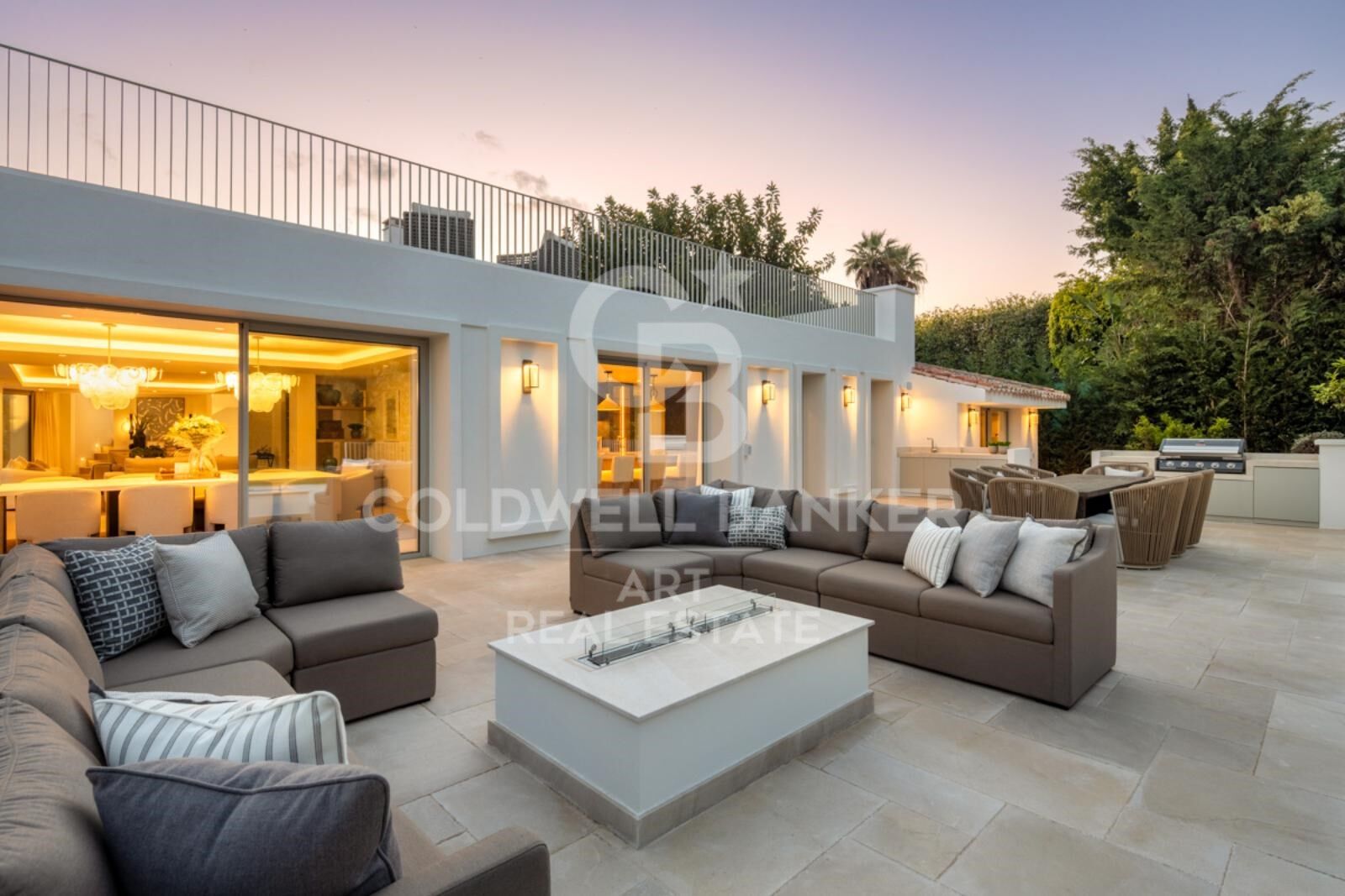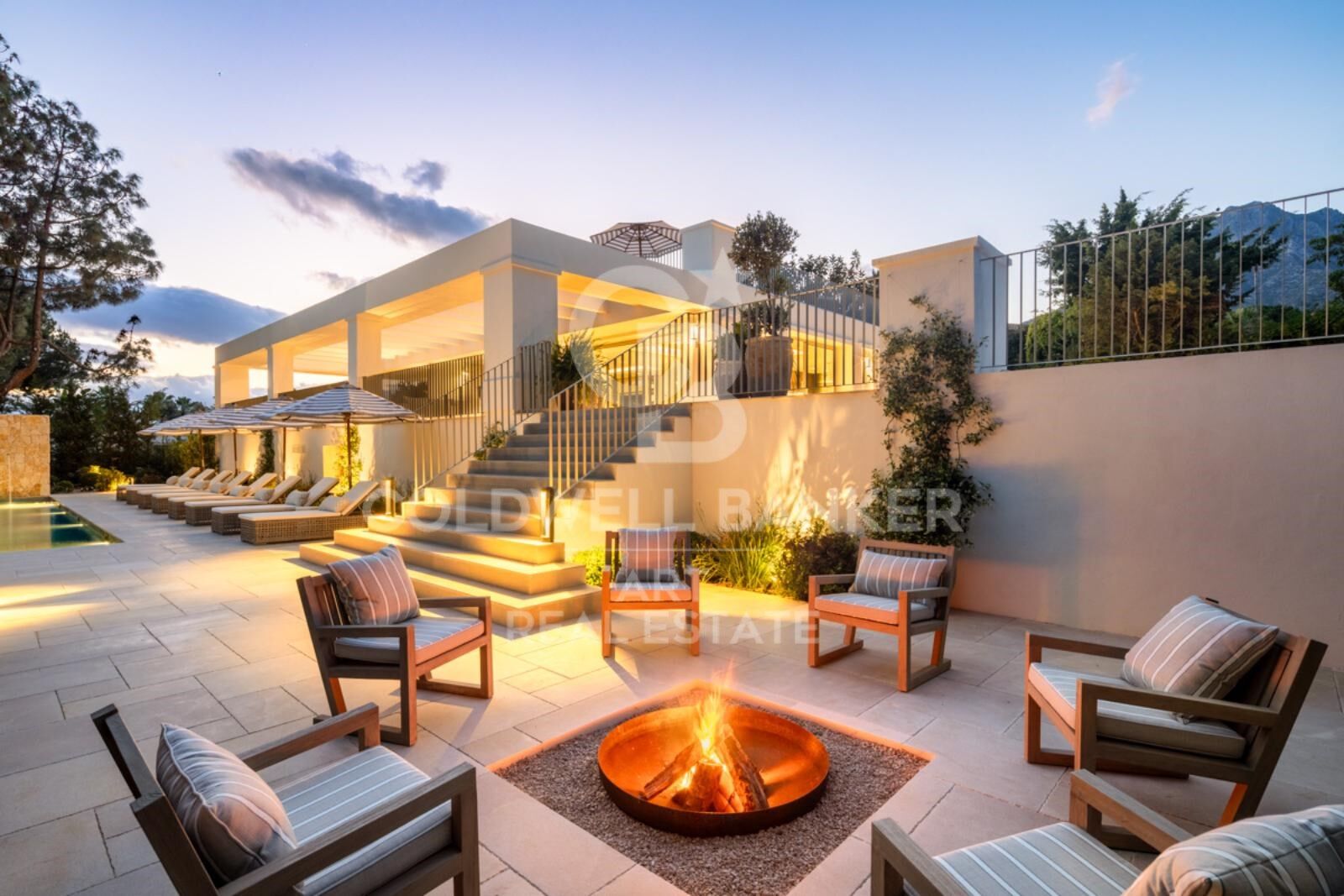 Les grandes terrasses extérieures offrent des espaces chill-out et un coin feu extérieur, parfaits pour profiter des douces soirées marbellies.