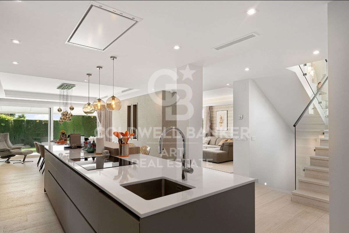 Entièrement rénovée il y a six ans, la maison présente un design intemporel avec des tons naturels et des matériaux qui créent une atmosphère chaleureuse et accueillante. Le confort est assuré toute l'année grâce au chauffage par le sol et à un système de climatisation Airzone à la pointe de la technologie, tous deux alimentés par un système aérothermique économe en énergie.