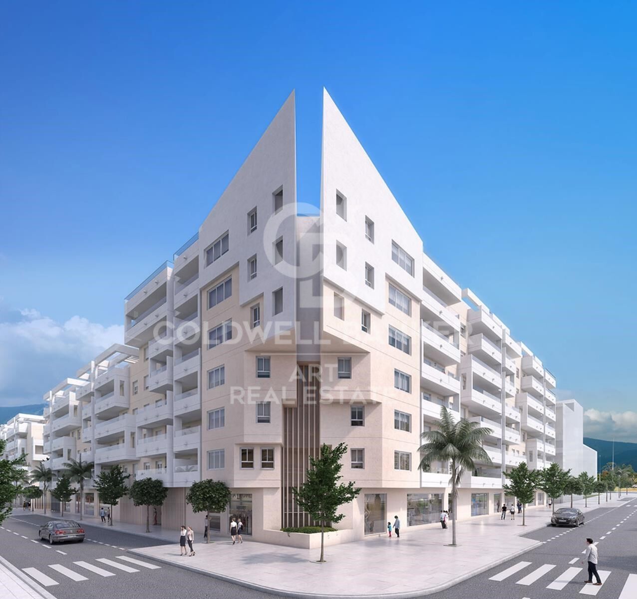 Un magnifique bâtiment au style moderne et aux détails architecturaux d'avant-garde, comme sa forme en pointe dans l'angle du bâtiment, avec des finitions de haute qualité qui garantissent la satisfaction totale et le confort maximal des résidents.
