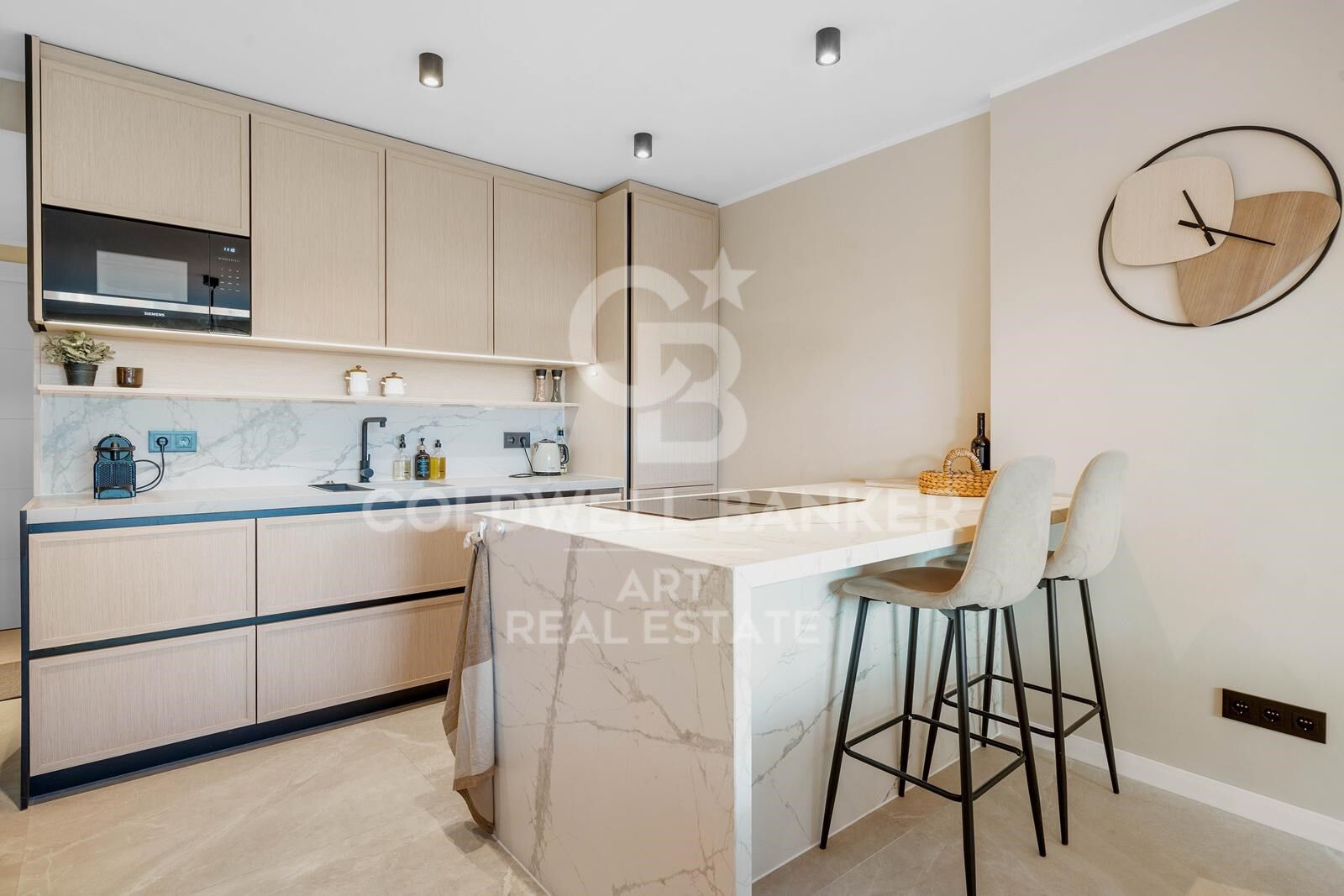 La lumière naturelle inonde les espaces intérieurs, mettant en valeur une palette douce et des finitions soignées, pour une ambiance paisible et raffinée.