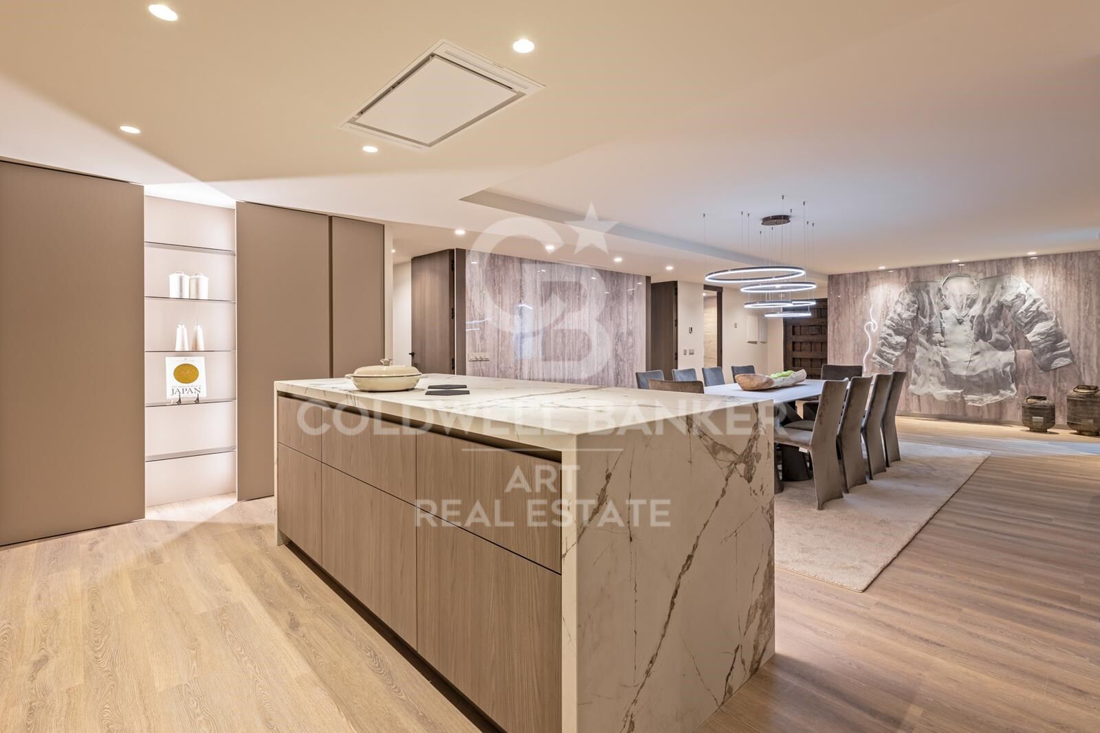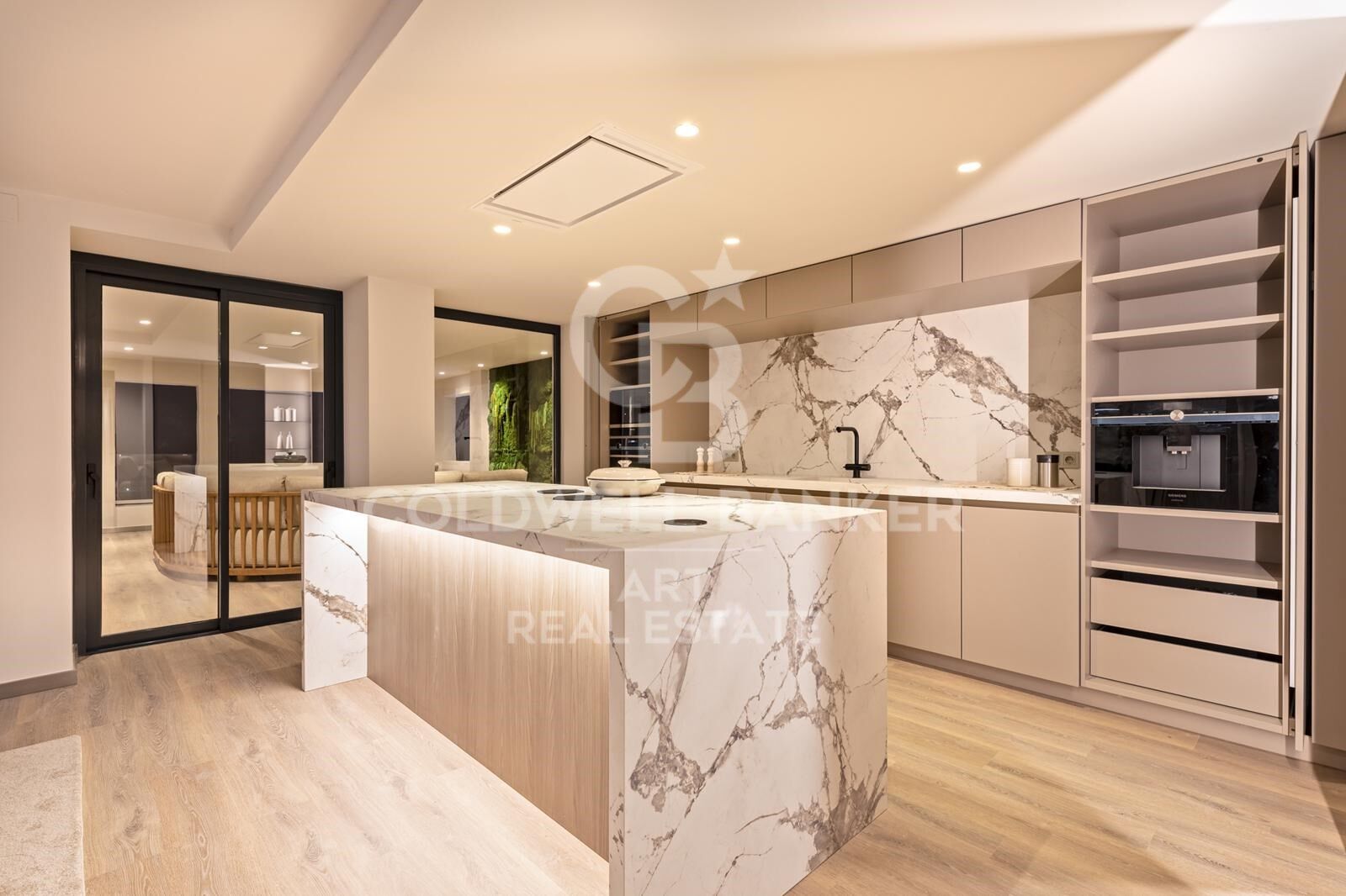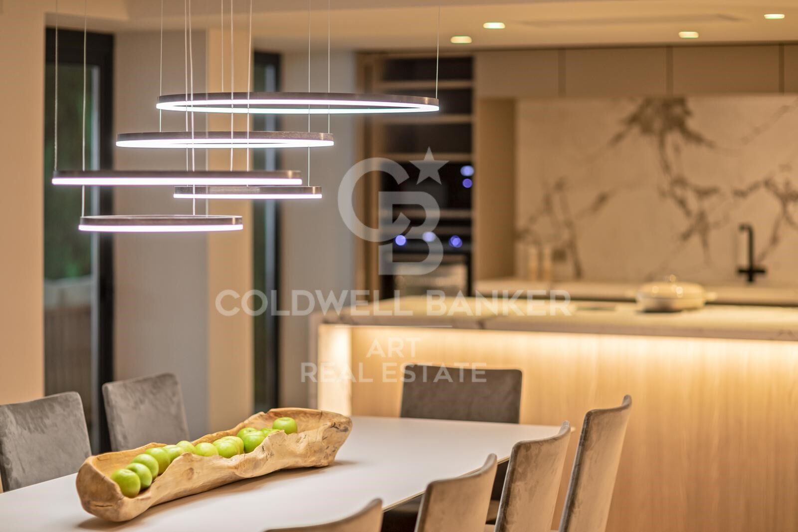 Les intérieurs ont été entièrement rénovés à un niveau impeccable, alliant design contemporain et élégance intemporelle. La cuisine italienne ouverte, équipée d'appareils haut de gamme, s'intègre parfaitement dans le salon et la salle à manger lumineux, créant une ambiance accueillante et moderne. Des caractéristiques haut de gamme telles que le chauffage par le sol, la climatisation contrôlée par airzone, une cheminée à l'éthanol et des volets électriques rehaussent le confort et la fonctionnalité de la maison. Chacune des cinq chambres offre des proportions généreuses, assurant un équilibre parfait entre style et praticité, idéale pour les familles ou pour recevoir des invités dans un confort total.