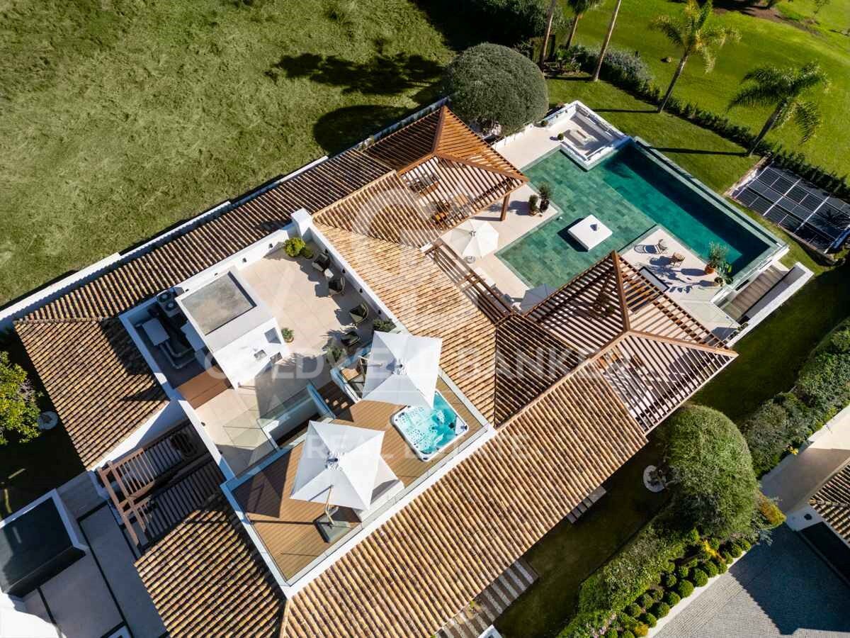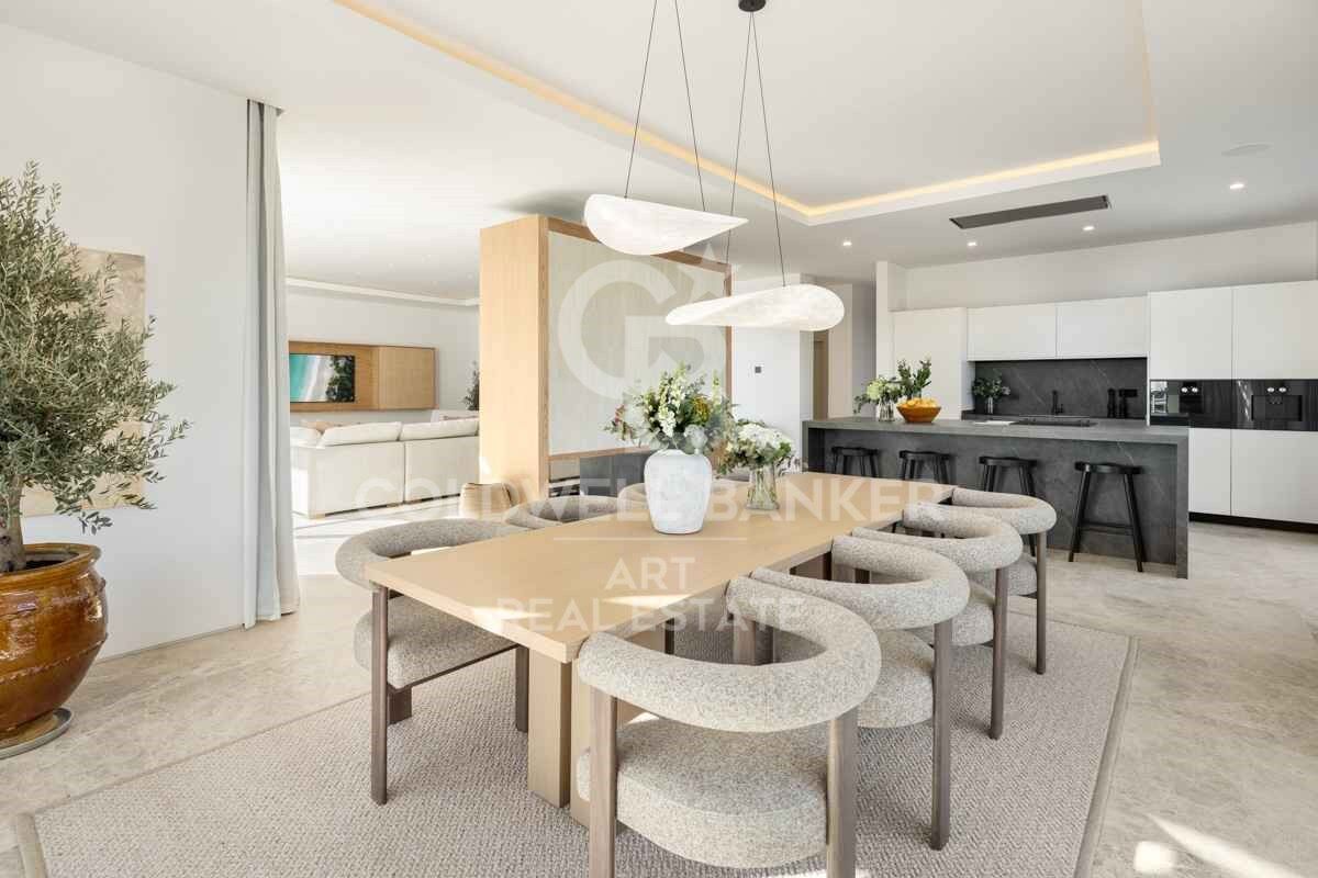 À l'intérieur, la villa présente un aménagement ouvert rehaussé d'une palette neutre et d'une abondance de lumière naturelle. La cuisine moderne est équipée d'appareils électroménagers à la pointe de la technologie, tandis que de larges portes vitrées mènent à de généreuses terrasses, vous invitant à profiter de la beauté de la vie en plein air. Avec cinq chambres luxueuses, dont une superbe suite parentale avec accès à une terrasse, un dressing et une salle de bains spectaculaire, chaque détail a été soigneusement conçu pour offrir confort et style.