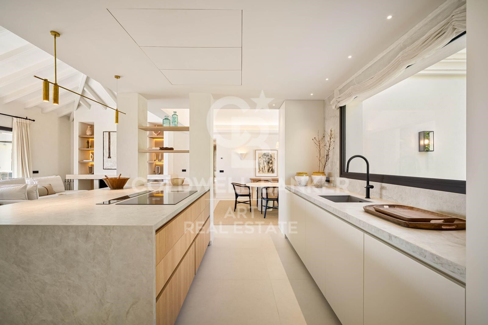 Située sur un terrain surélevé et magnifiquement aménagé, la maison promet intimité et tranquillité tout en vous gardant à proximité des meilleurs terrains de golf de Marbella, des restaurants raffinés et des plages dorées. À l'intérieur, les tons naturels et les hauts plafonds voûtés créent une atmosphère chaleureuse et accueillante. L'aménagement ouvert relie une cuisine contemporaine, une salle à manger et un salon spacieux, tous conçus dans un souci de confort et de style.