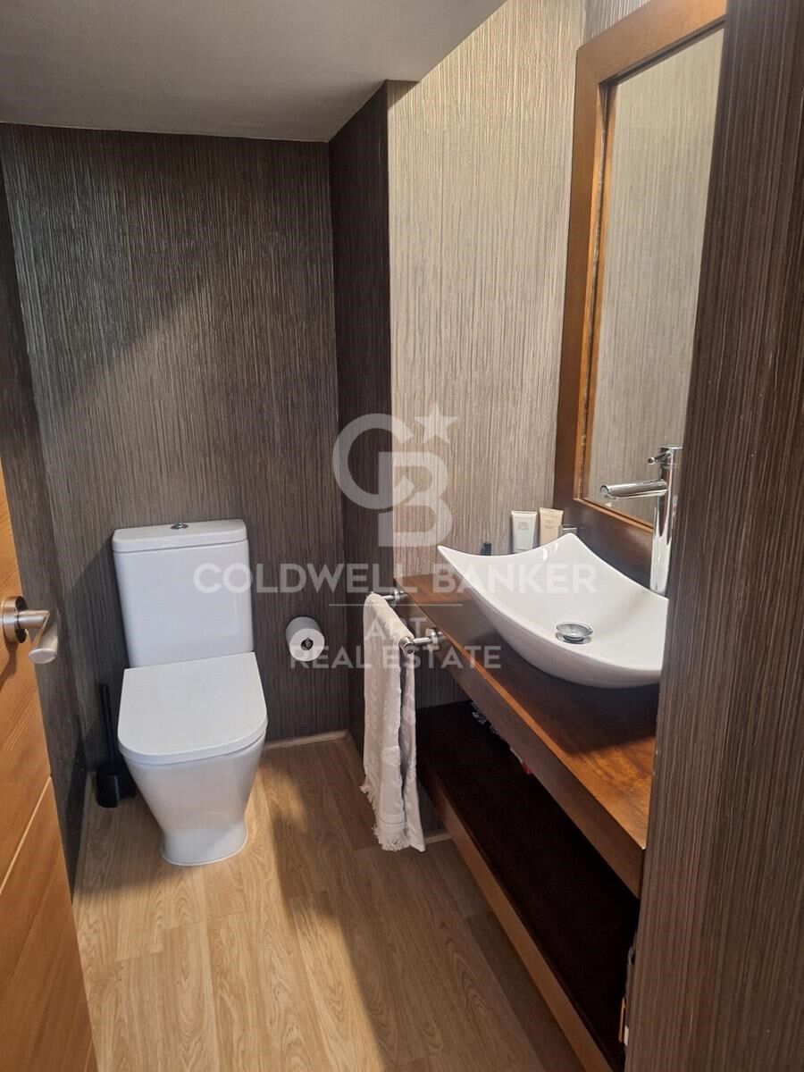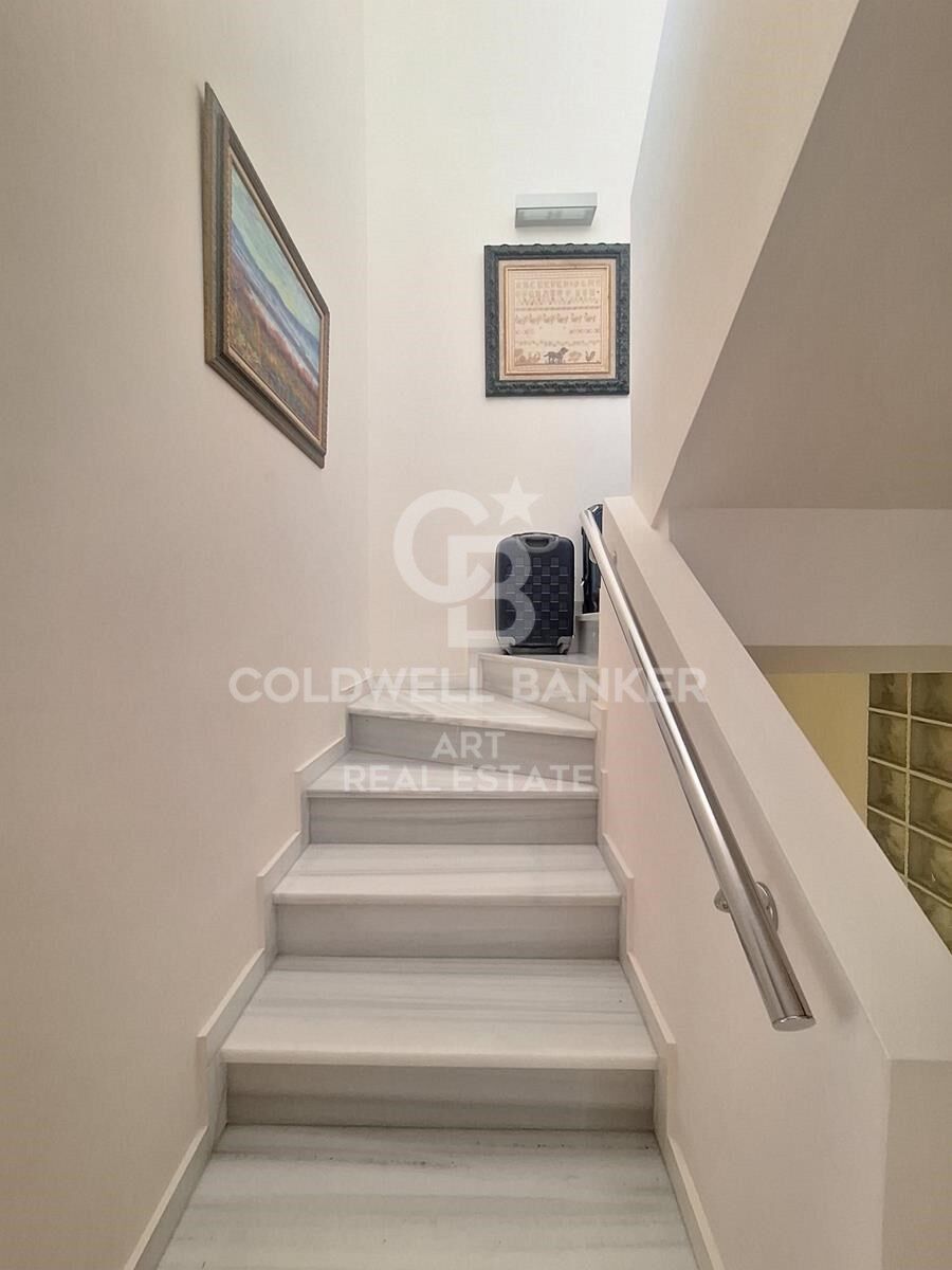 Cette villa moderne et lumineuse dispose de 4 chambres, 2 salles de bains et 1 toilette, construite avec des matériaux de haute qualité. La propriété est équipée de l'air conditionné et du chauffage dans toutes les pièces, de placards et d'une cuisine entièrement équipée. Elle dispose également d'un grand jardin privé, de terrasses au premier étage et d'un incroyable solarium avec une vue imprenable.