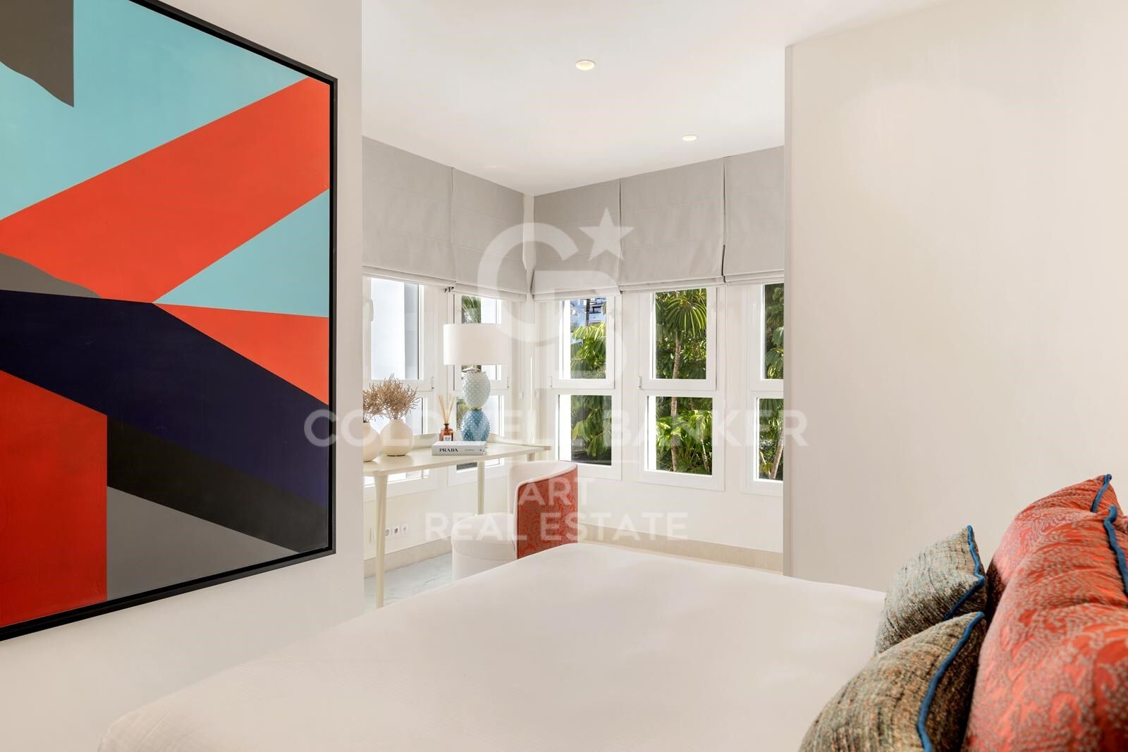 Situé en étage élevé et orienté sud-ouest, ce bien de trois chambres et deux salles de bains offre une vue panoramique imprenable sur les jardins subtropicaux, la montagne de La Concha, le parcours de golf et la mer Méditerranée. Les pièces à vivre s'ouvrent sur une magnifique terrasse de 30 m², idéale pour profiter de ce cadre exceptionnel en toute tranquillité.
