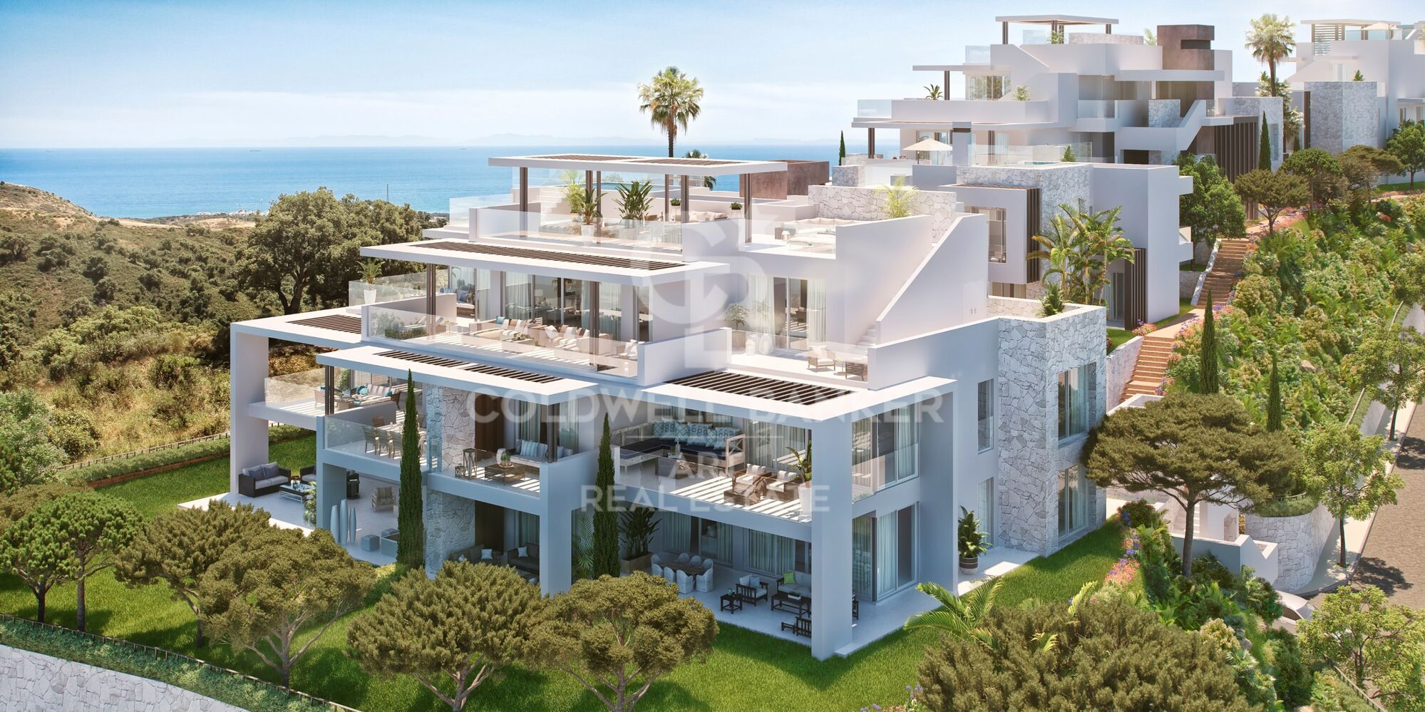 Sur la côte méditerranéenne, la qualité des espaces extérieurs est aussi importante que celle de l'intérieur. Une attention particulière a donc été portée au design, à l'espace et à la sécurité des parties communes. Tous les appartements offrent une vue sur la mer et sur les jardins soigneusement aménagés. La communauté comprend une piscine chauffée de 25 mètres, entourée d'une terrasse-solarium avec des chaises longues confortables, une terrasse couverte accueillante et une cuisine extérieure avec barbecueidéal pour se détendre ou recevoir.