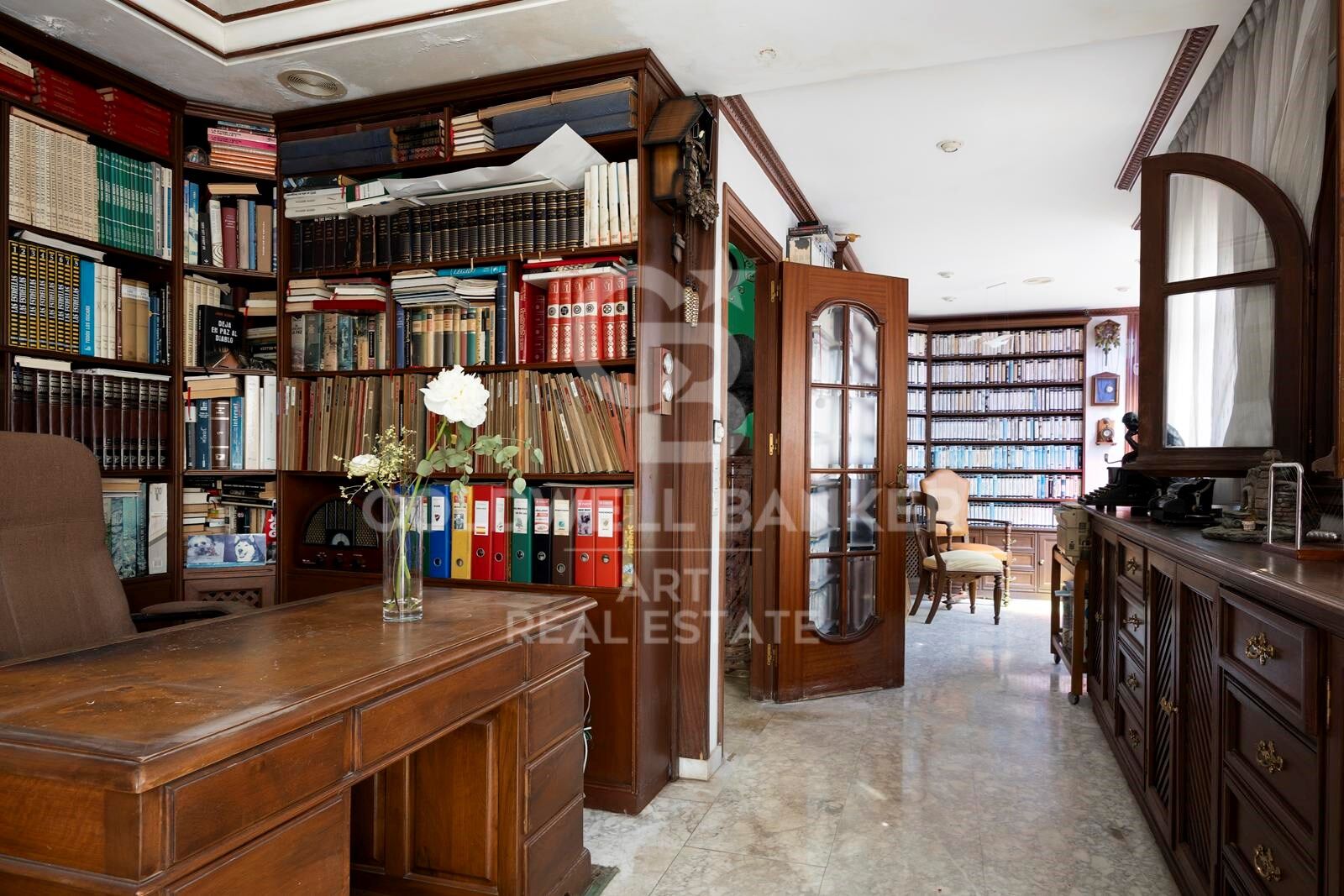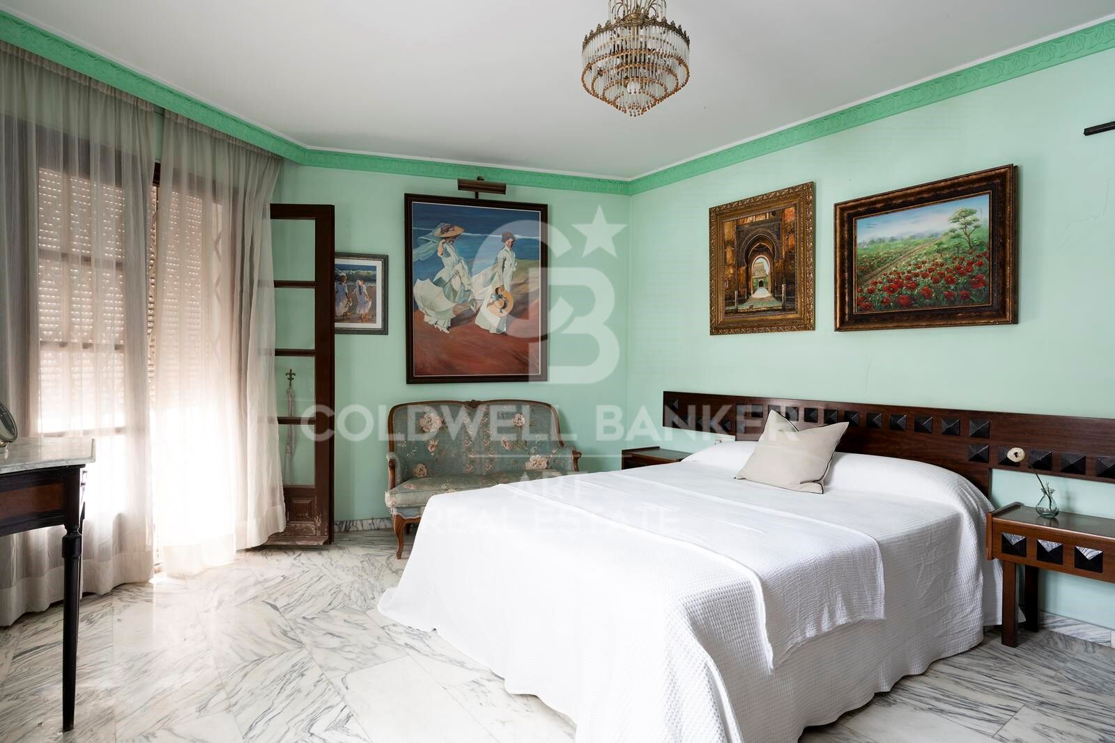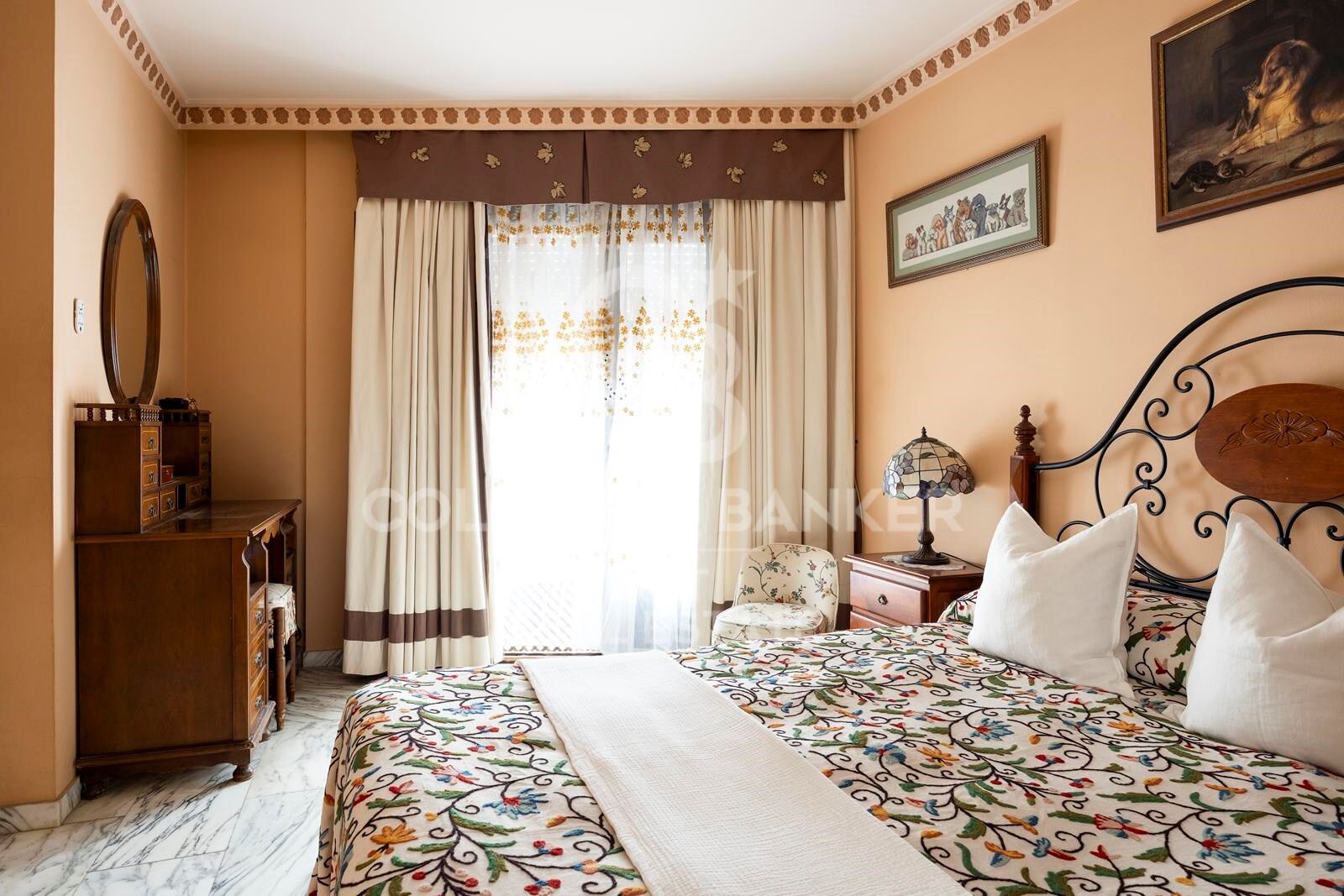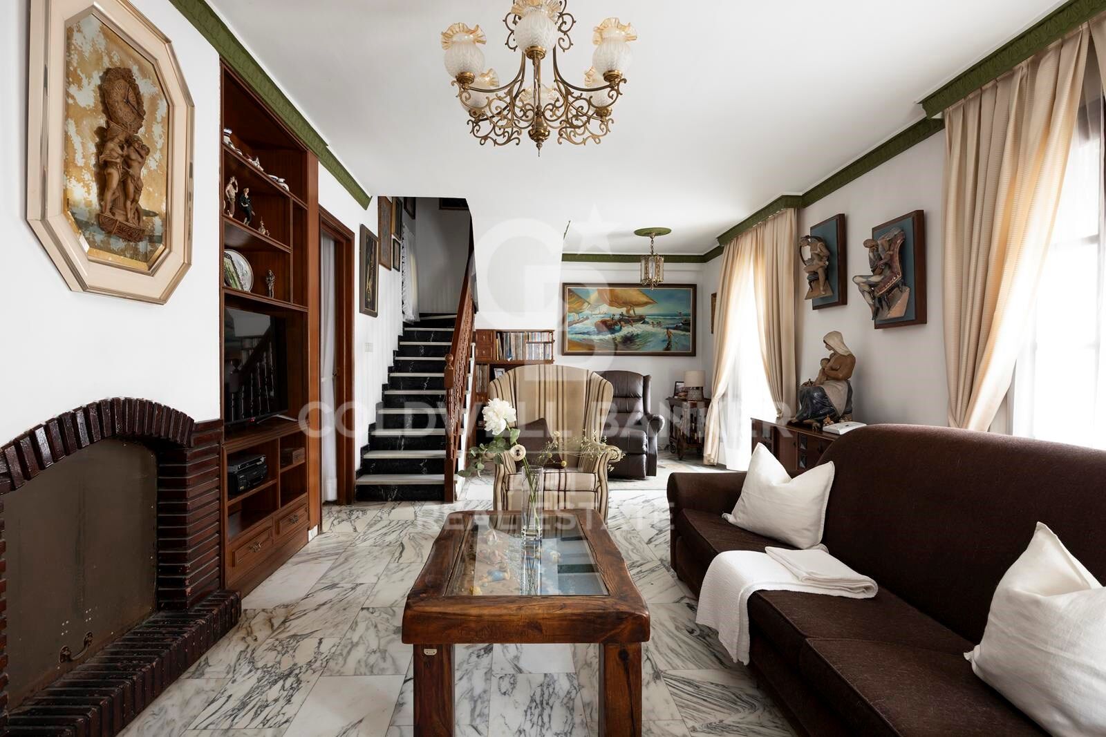 Conçue avec des caractéristiques inspirées du château, notamment des sols en marbre, des fenêtres cintrées, des rampes en bois et de beaux vitraux, la maison respire le caractère et l'élégance. En son cur se trouve une spectaculaire cour de style andalou inspirée du palais de l'Alhambra, avec une fontaine d'eau traditionnelle, un soleil tacheté et une atmosphère magique.