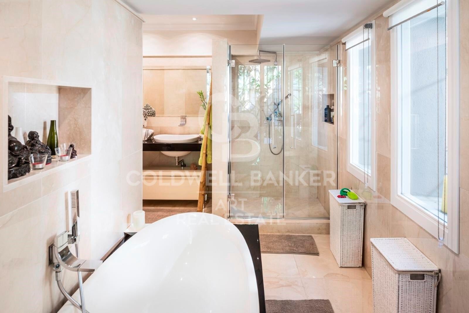 Au rez-de-chaussée se trouvent deux chambres qui partagent une salle de bain moderne et raffinée. L'étage supérieur est entièrement consacré à la suite parentale, avec un grand dressing, une salle de bain rénovée et une terrasse ensoleillée offrant une agréable vue partielle sur la mer.