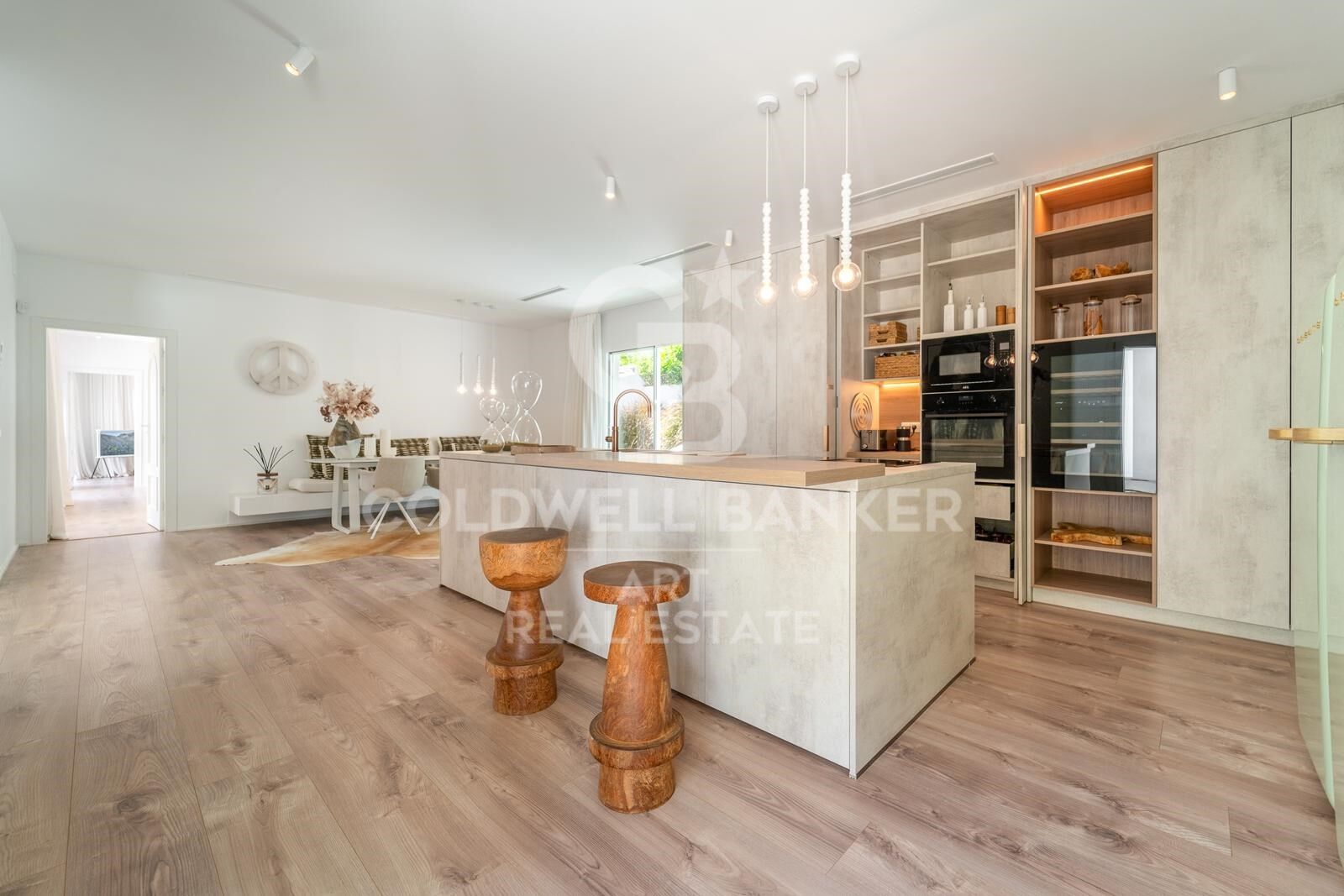Les caractéristiques modernes comprennent une climatisation par zone Airzone, un chauffage par le sol partout, des ventilateurs de plafond et un système domotique entièrement intégré. Vendue entièrement meublée et décorée avec des pièces de design sélectionnées, la villa est prête à emménager.