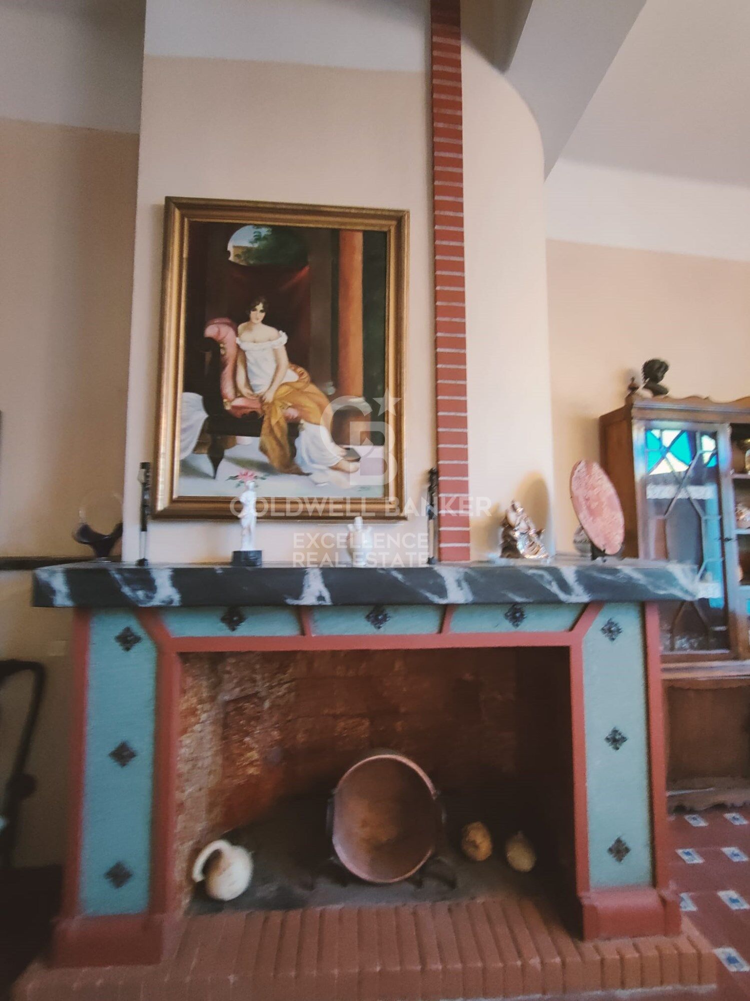 Rez-de-chaussée : spectaculaire hall de style majestueux avec des piliers en marbre, distribué dans un grand salon, une grande cuisine, un garde-manger, une salle à manger fermée et un salon avec cheminée.