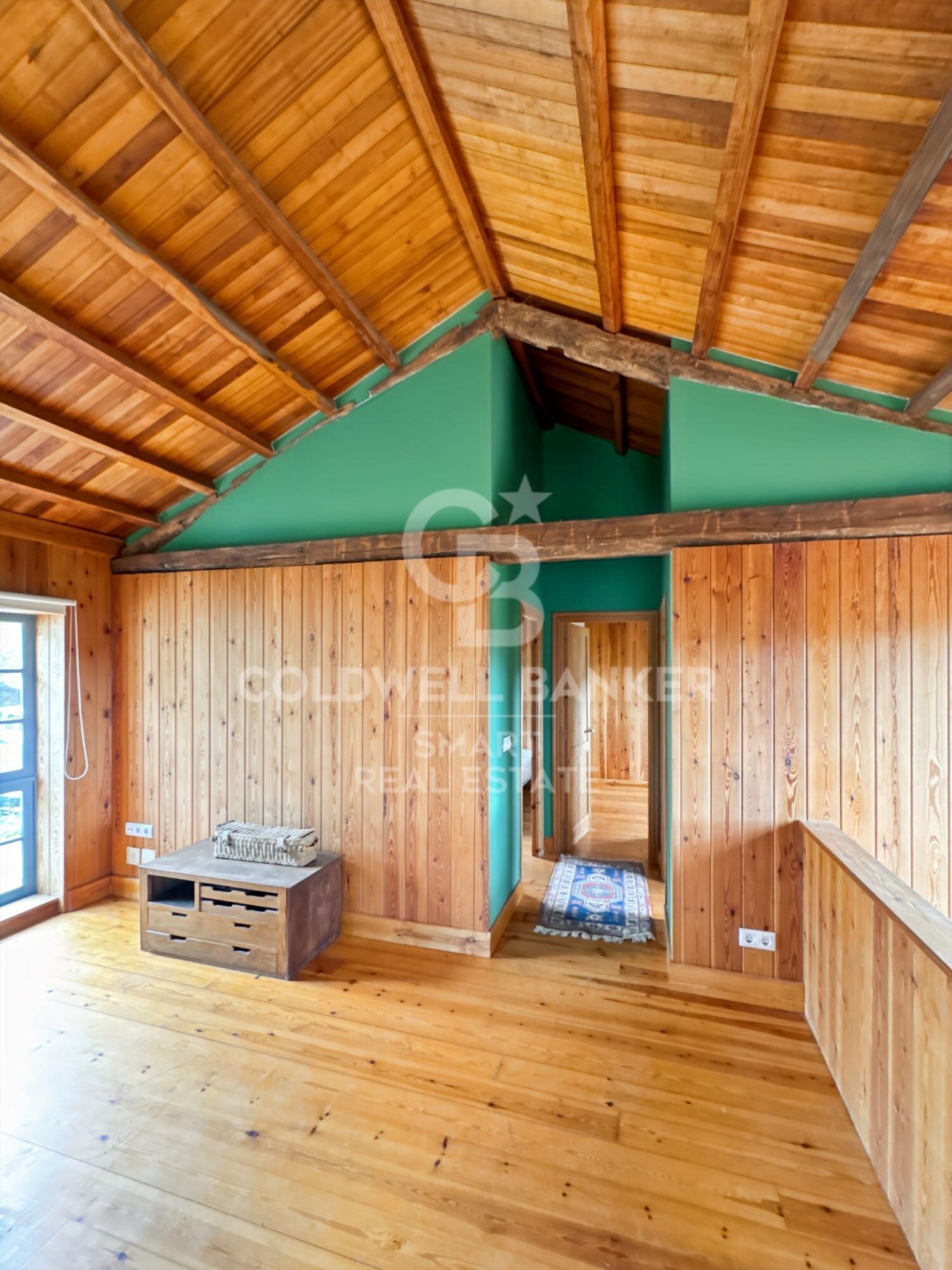 Dispone de piscina, alpendre de 45m², aparcamiento cubierto y calefacción por gasoil.
