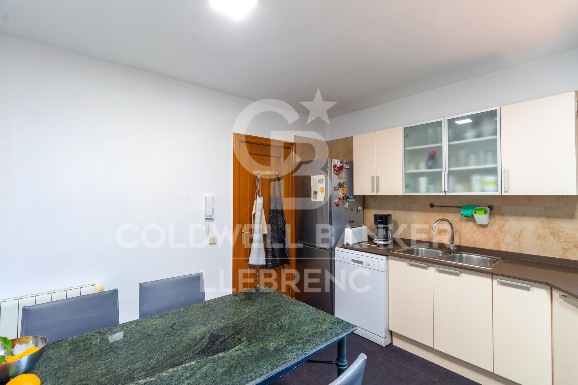 Le sol est complété par une cuisine indépendante entièrement équipée, une salle de bain complète, une double chambre avec armoire encastrée, une buanderie et un accès direct au garage privé.