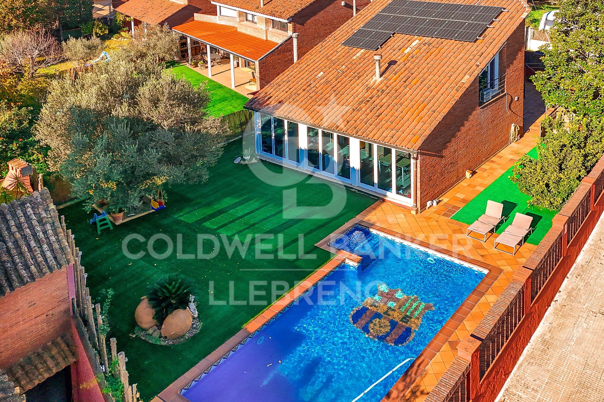 La maison est entourée d'un magnifique jardin plat et ensoleillé, où se distingue une magnifique grande piscine, idéale pour profiter de la nature et de l'intimité.