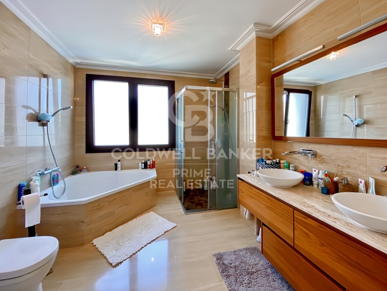 La villa dispose de quatre spacieuses chambres et de trois salles de bains élégamment décorées dans la zone de vie, garantissant amplement d'espace pour la détente et l'intimité. Une salle de bains supplémentaire dans le couloir ajoute de la commodité pour les résidents comme pour les invités. Le grand espace de vie et de salle à manger est conçu pour le confort et le style, tandis que la cuisine séparée est idéalement équipée pour la cuisine gastronomique et les réceptions.