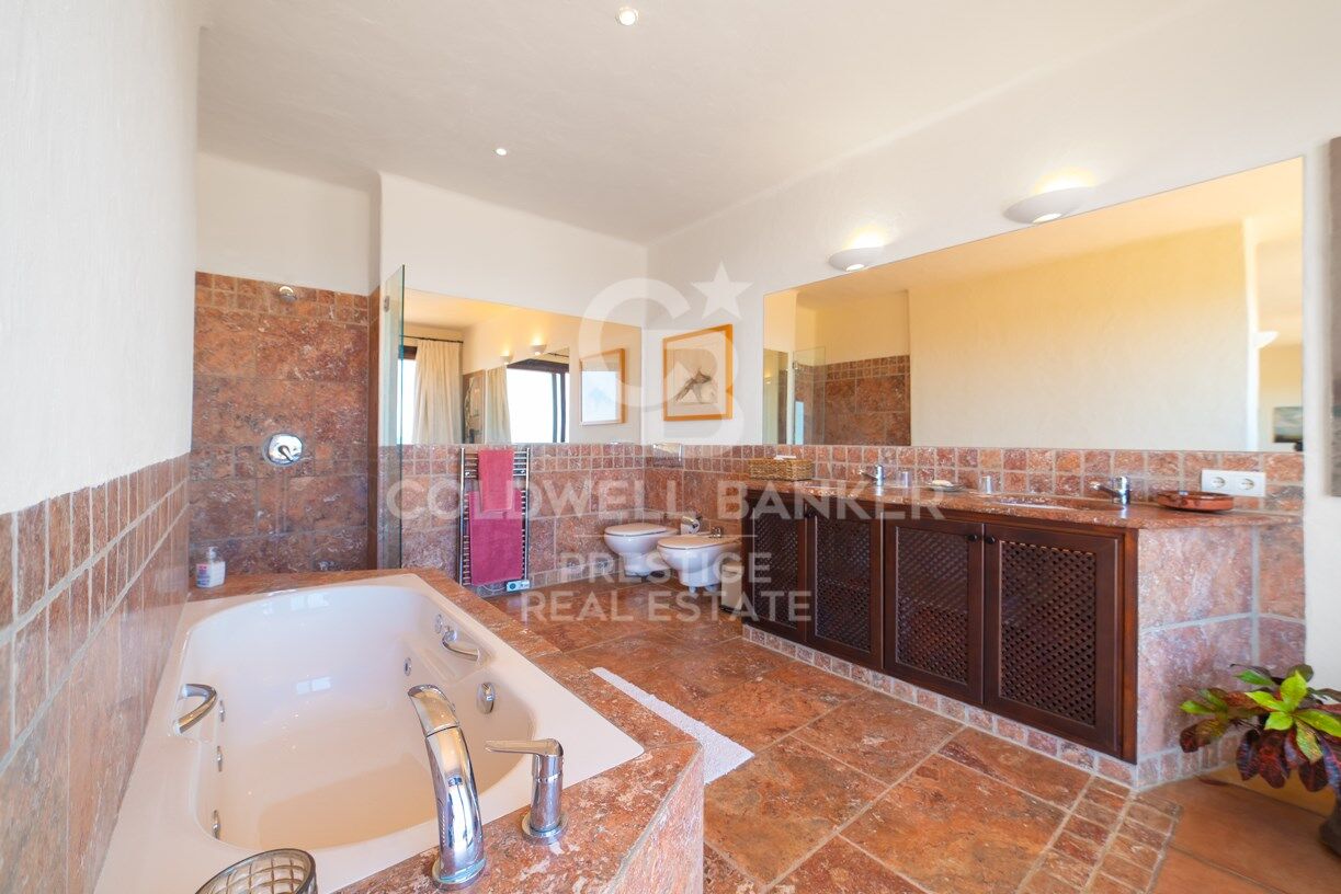 Cette propriété unique est située sur le côté est de l'île d'Ibiza, sur une colline privée. L'orientation de la maison principale est est/nord-ouest. Tout au long de l'année, vous pouvez voir les plus beaux levers de soleil, mais aussi la pleine lune qui sort de l'eau, un spectacle merveilleux. De plus, il y a une vue dégagée sur la vallée de Morna, la mer sur la côte est de l'île et une partie de l'île de Tagomago.
