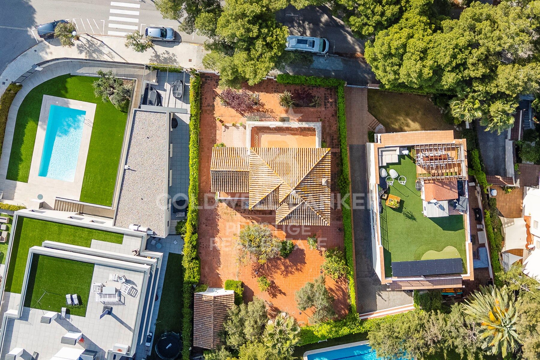 Le rez-de-chaussée, accessible par une porte en arc, s'organise autour d'un vaste hall qui relie les différents espaces. D'un côté, un salon-bibliothèque lumineux, de l'autre, une salle à manger-salon avec des fenêtres donnant sur le jardin, créant une atmosphère chaleureuse et accueillante. La cuisine, fonctionnelle et équipée, est reliée à une buanderie extérieure et à une douche pratique. De là, vous accédez directement au jardin, aménagé avec un sol en céramique catalane qui s'intègre aux espaces verts, ornés d'arbres et de plantes autochtones. Ce niveau comprend également une salle de bain pour invités et un garage couvert pouvant accueillir un véhicule.