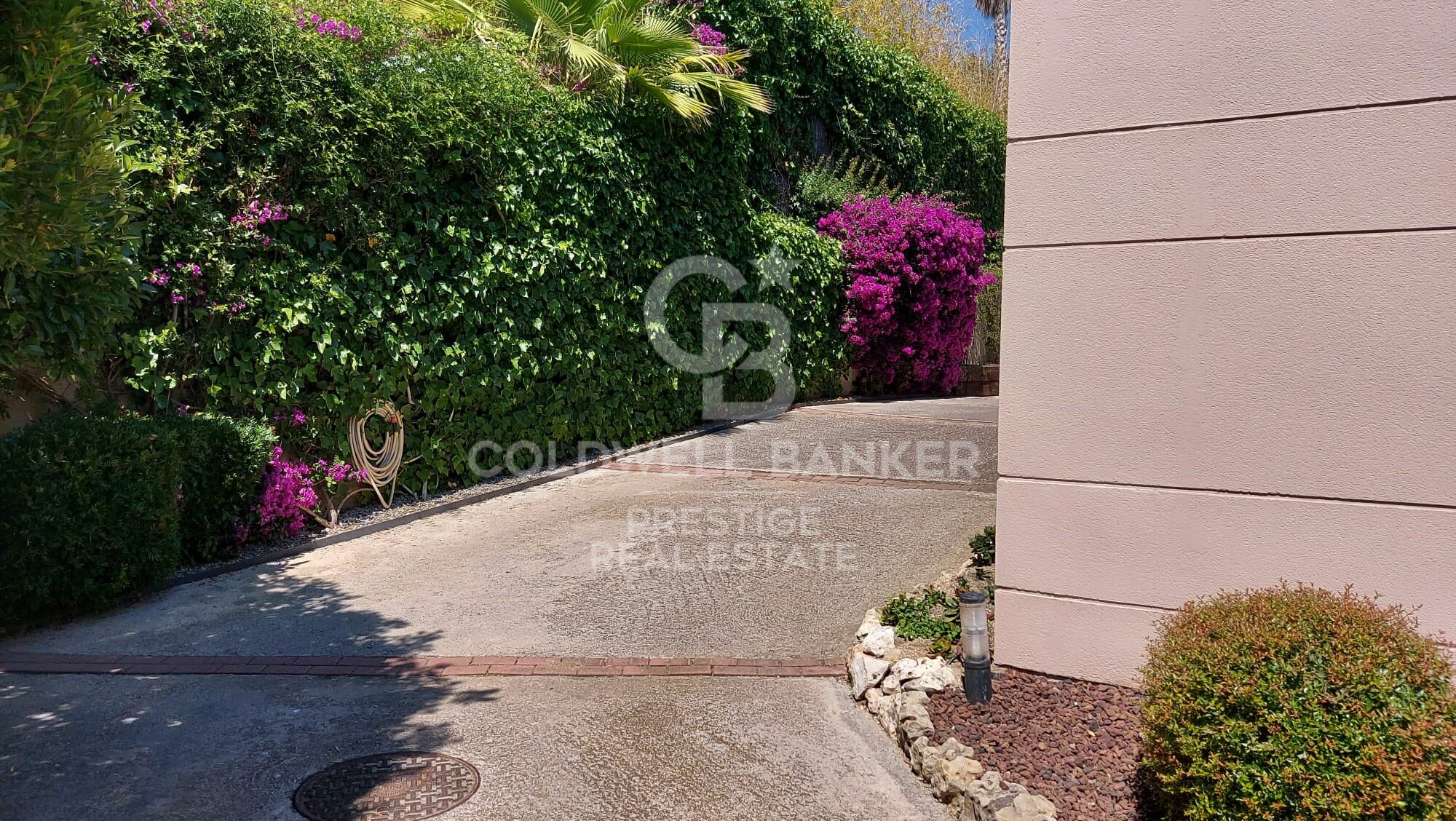 La distribución y las grandes dimensiones de la vivienda, nos permiten poder hacer vida en la planta principal, en la que encontramos un salón con grandes cristaleras con amplias vistas y salida directa a la terraza cubierta, jardín y piscina Una cocina amplia, totalmente equipada con amplio office y salida también a la terraza y a la barbacoa. En esta misma planta disponemos de una máster suite con vestidor independiente y baño completo. Encontramos también una habitación de juegos de gran tamaño con baño y una habitación destinada a zona de ropa. La planta se completa con un gran garaje con espacio para dos coches y zona de almacenaje.