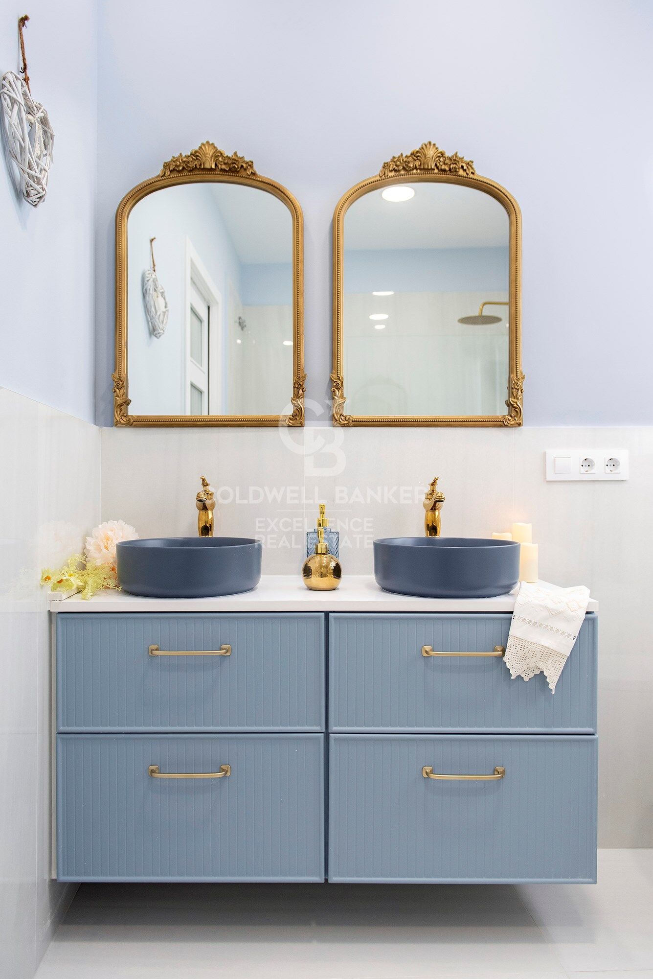 - Deuxième salle de bain complète avec design moderne, douche, meubles design et armoire pour le linge de maison.