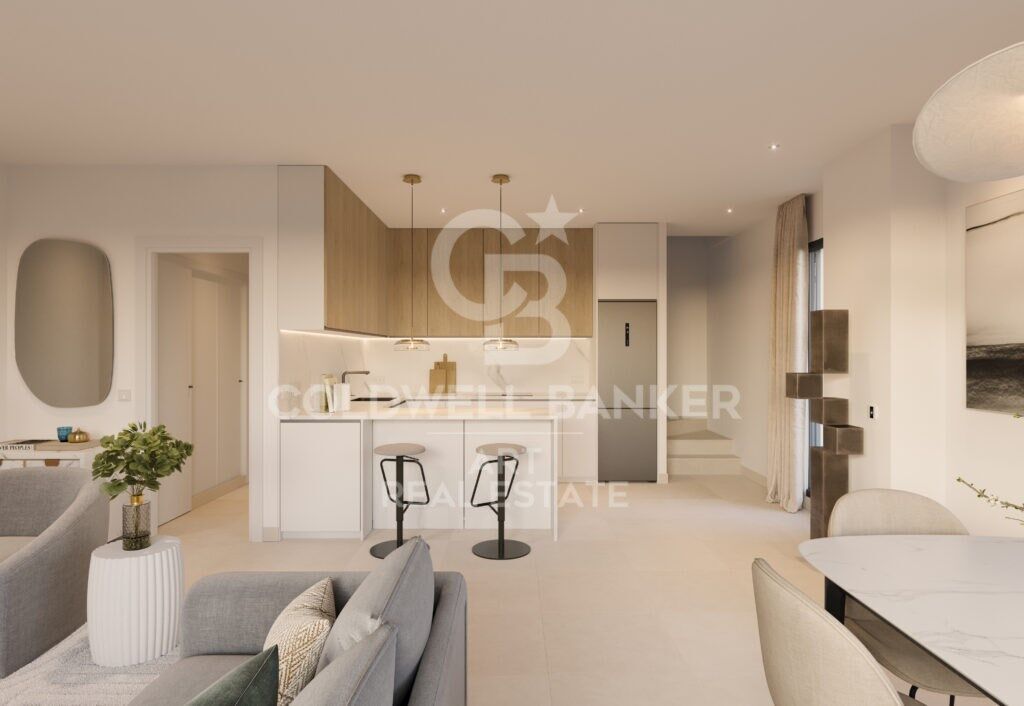 La résidence offrira des espaces communs paysagers et une piscine communautaire, idéale pour profiter du climat méditerranéen dans un cadre détendu. Le projet, conçu selon un concept durable et parfaitement intégré à la topographie du terrain, se compose de 45 maisons jumelées de 3 chambres, orientées sud-est, sud et sud-ouest, garantissant une excellente luminosité et des vues sur la mer absolument spectaculaires.