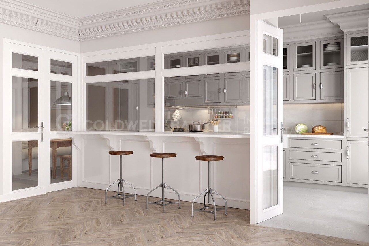 La cuisine moderne, entièrement équipée, dispose d'appareils électroménagers haut de gamme et d'un îlot central qui invite à partager des moments culinaires. Depuis la cuisine, on accède à un charmant balcon - idéal pour savourer un café le matin ou un dîner au coucher du soleil.