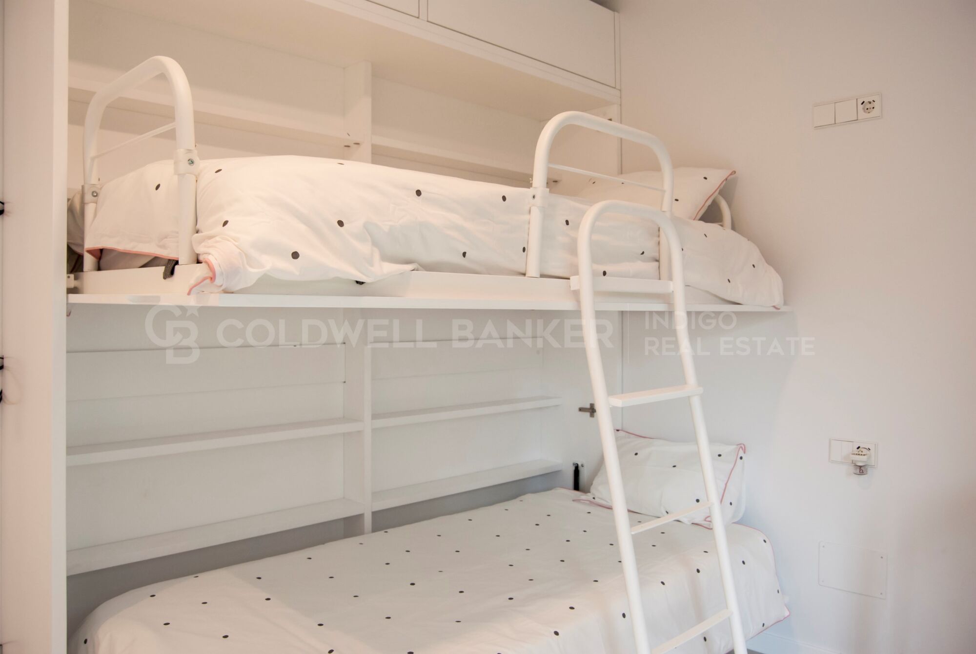 L'appartement comprend deux chambres spacieuses et lumineuses. La chambre principale dispose d'une salle de bain attenante, offrant intimité et confort. La deuxième chambre est également généreusement dimensionnée et peut être utilisée comme chambre d'amis ou espace de travail, s'adaptant aux besoins de chaque résident. De plus, la propriété comprend une autre salle de bain, conçue avec des finitions de haute qualité.