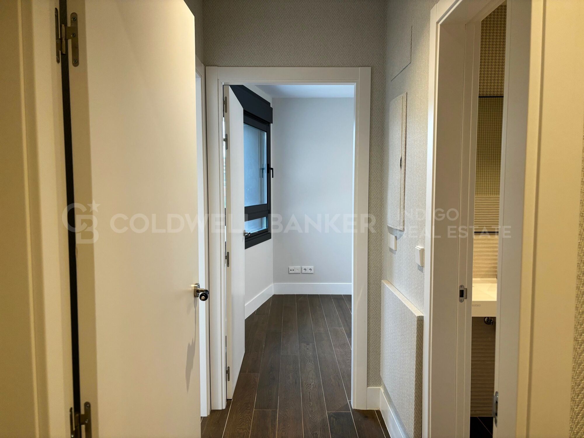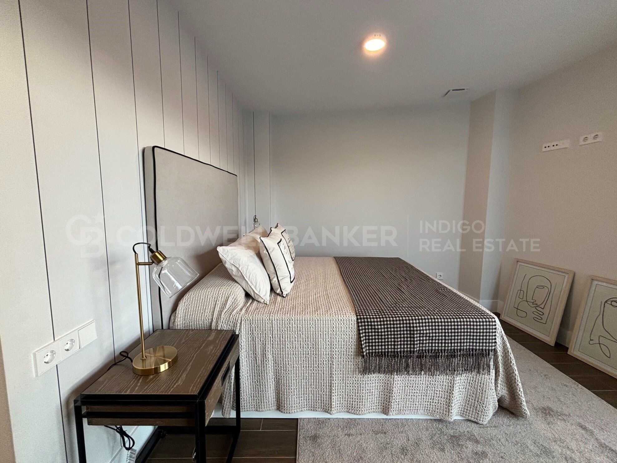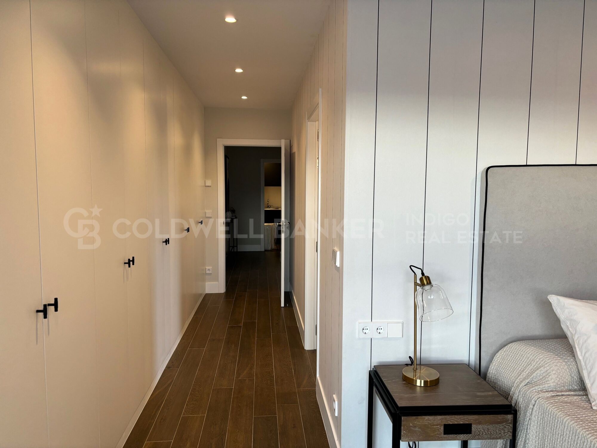 Cuenta con tres dormitorios, incluyendo suite con baño y vestidor, dos baños completos, y una luminosa zona de salón-comedor-cocina en espacio abierto, totalmente equipada.