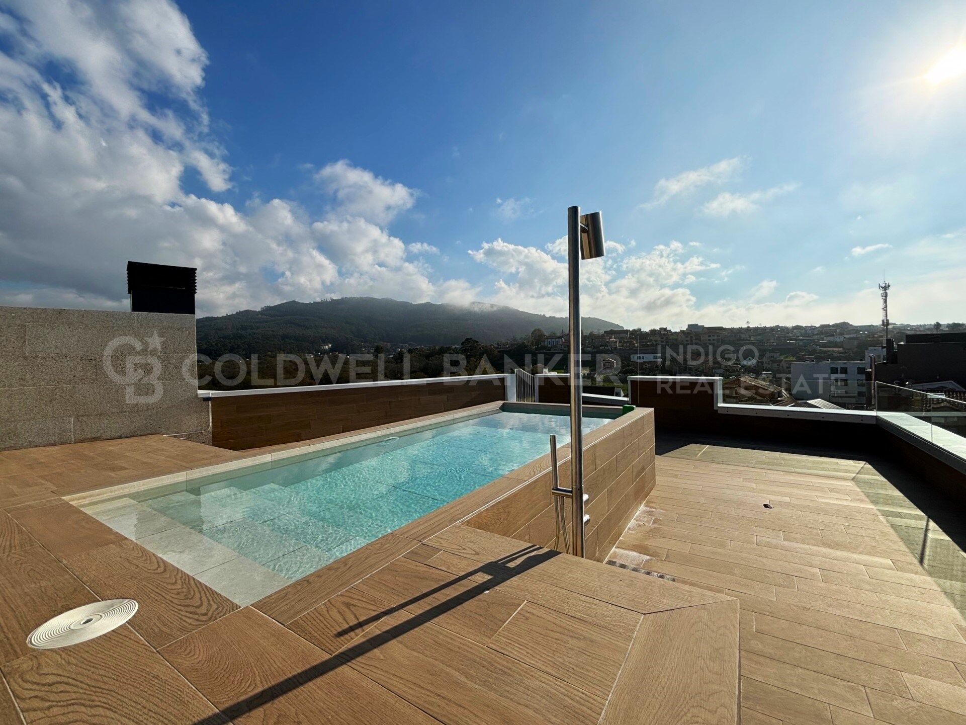 Dispone de dos terrazas privadas, destacando la superior con piscina privada, baño independiente y vistas panorámicas de 360°. Incluye lavadero, dos plazas de garaje y trastero. El edificio ofrece jardín y piscina comunitaria.