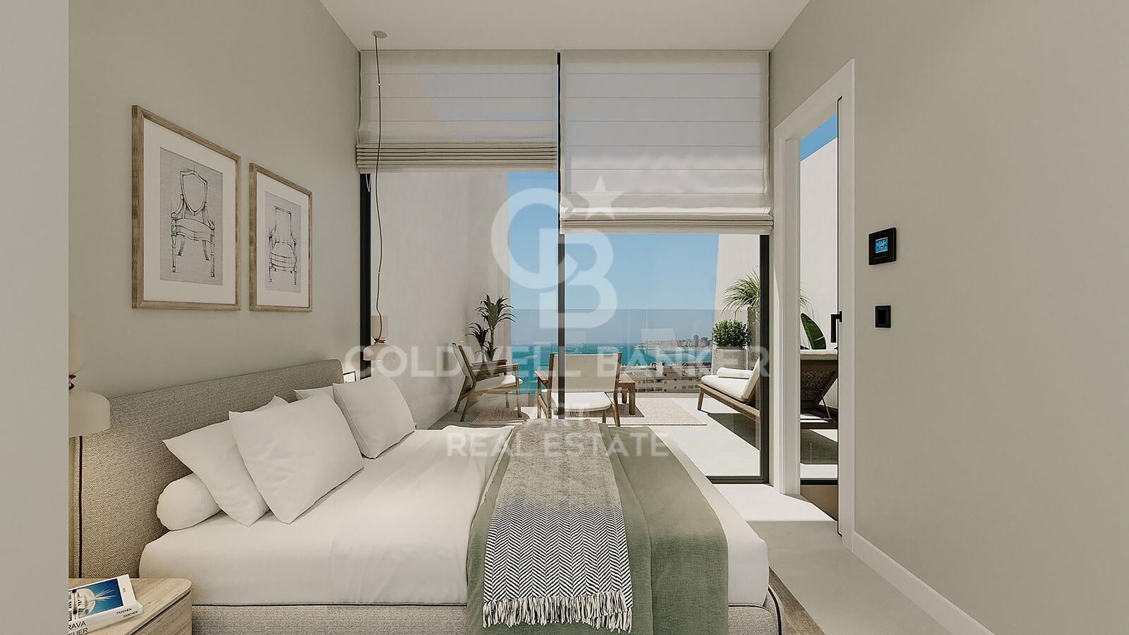 El dormitorio en la última planta cuenta con una terraza solárium. El lugar ideal para disfrutar del amanecer o de una espectacular puesta de sol.