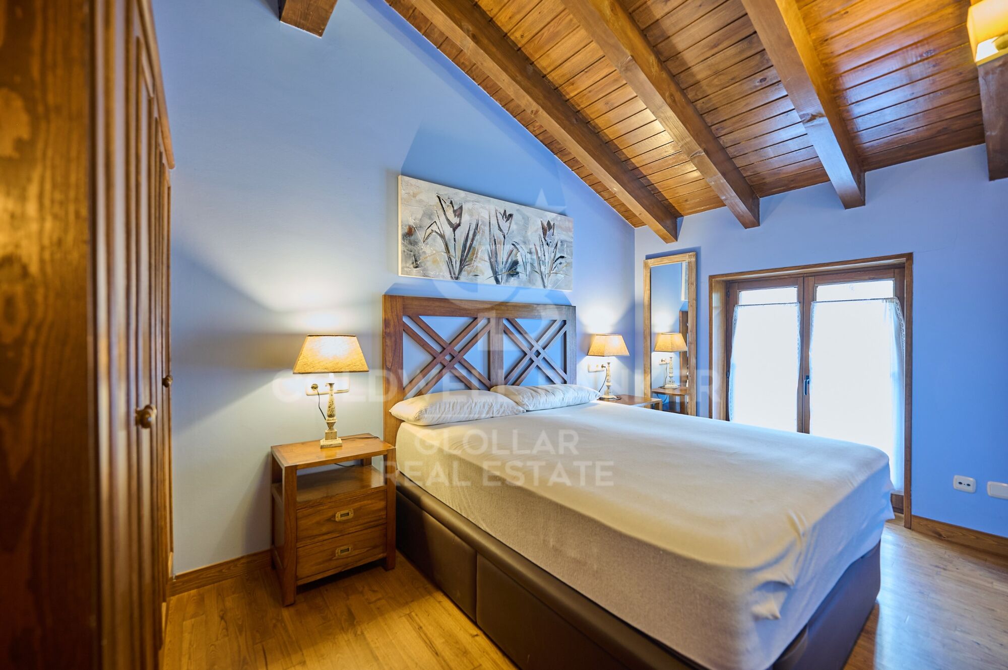 Casa adosada situada en una zona tranquila y rodeada de naturaleza, ideal para disfrutar de la temporada de invierno con comodidad y espacio. La vivienda dispone de terraza y jardín privado y está distribuida en dos cómodas plantas. En la planta principal se encuentra un amplio salón comedor con chimenea y salida directa a la terraza y al jardín, una cocina abierta con barra pasaplatos, una habitación y un baño completo. En la planta superior se ubican dos habitaciones adicionales y un segundo baño completo, proporcionando un ambiente práctico y funcional para estancias largas. La casa cuenta además con garaje tipo box y trastero.