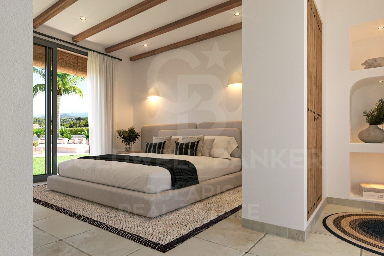 En la exclusiva urbanización Las Lomas del Rey, rodeada de naturaleza y serenidad, Villa Loma se integra en el paisaje con una arquitectura inspirada en los estilos mediterráneo e ibicenco. Sus formas redondeadas evocan las curvas suaves del litoral, sus techos abovedados con vigas vistas recuerdan a las casas tradicionales de la isla blanca, y sus amplios ventanales permiten que la luz mediterránea fluya con libertad, bañando cada rincón de la vivienda.