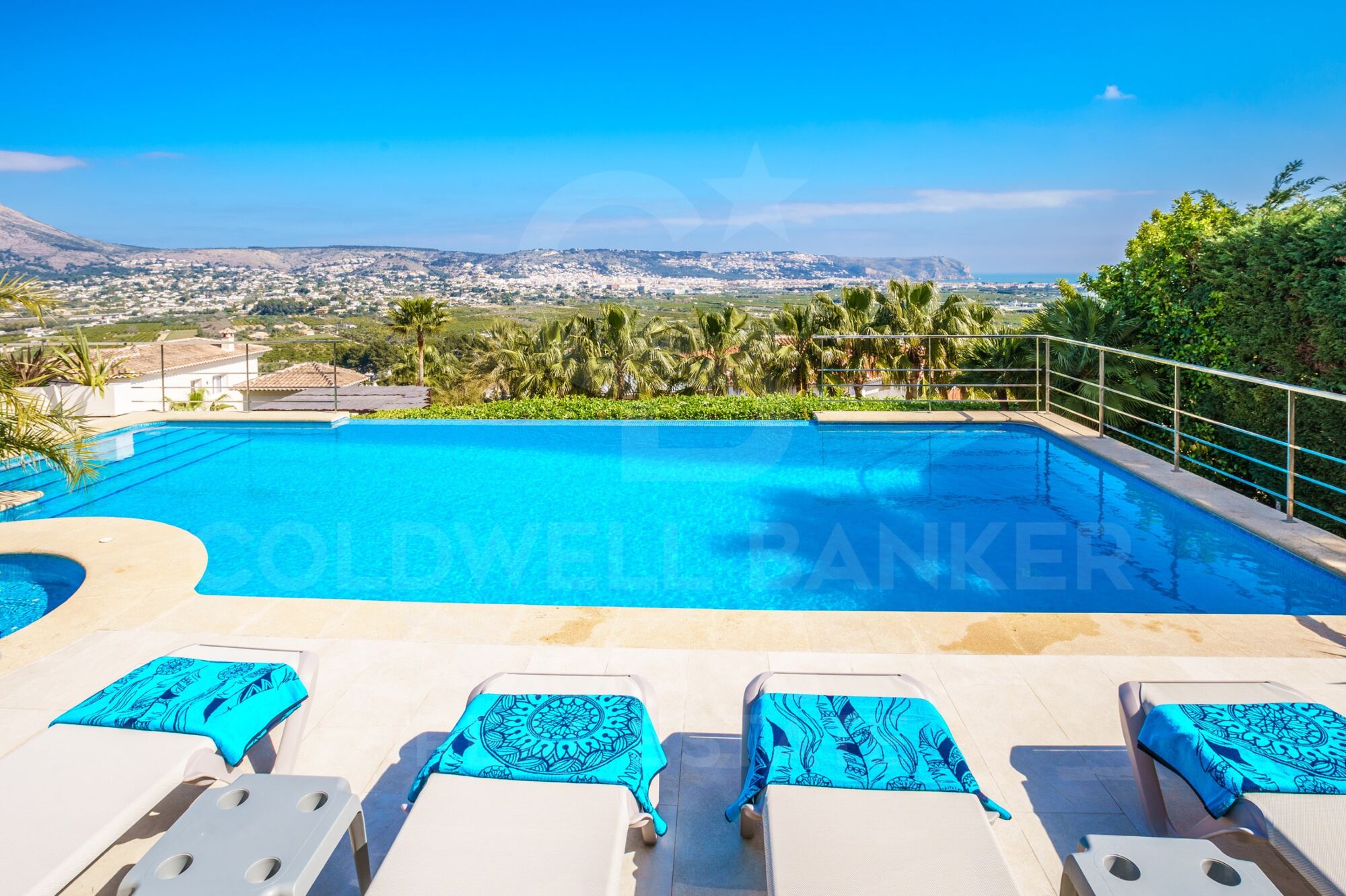 La propiedad ofrece total privacidad. La piscina infinita de 10x5m también incluye un jacuzzi. La vista panorámica de la bahía, el mar, el valle y las montañas es sencillamente impresionante.