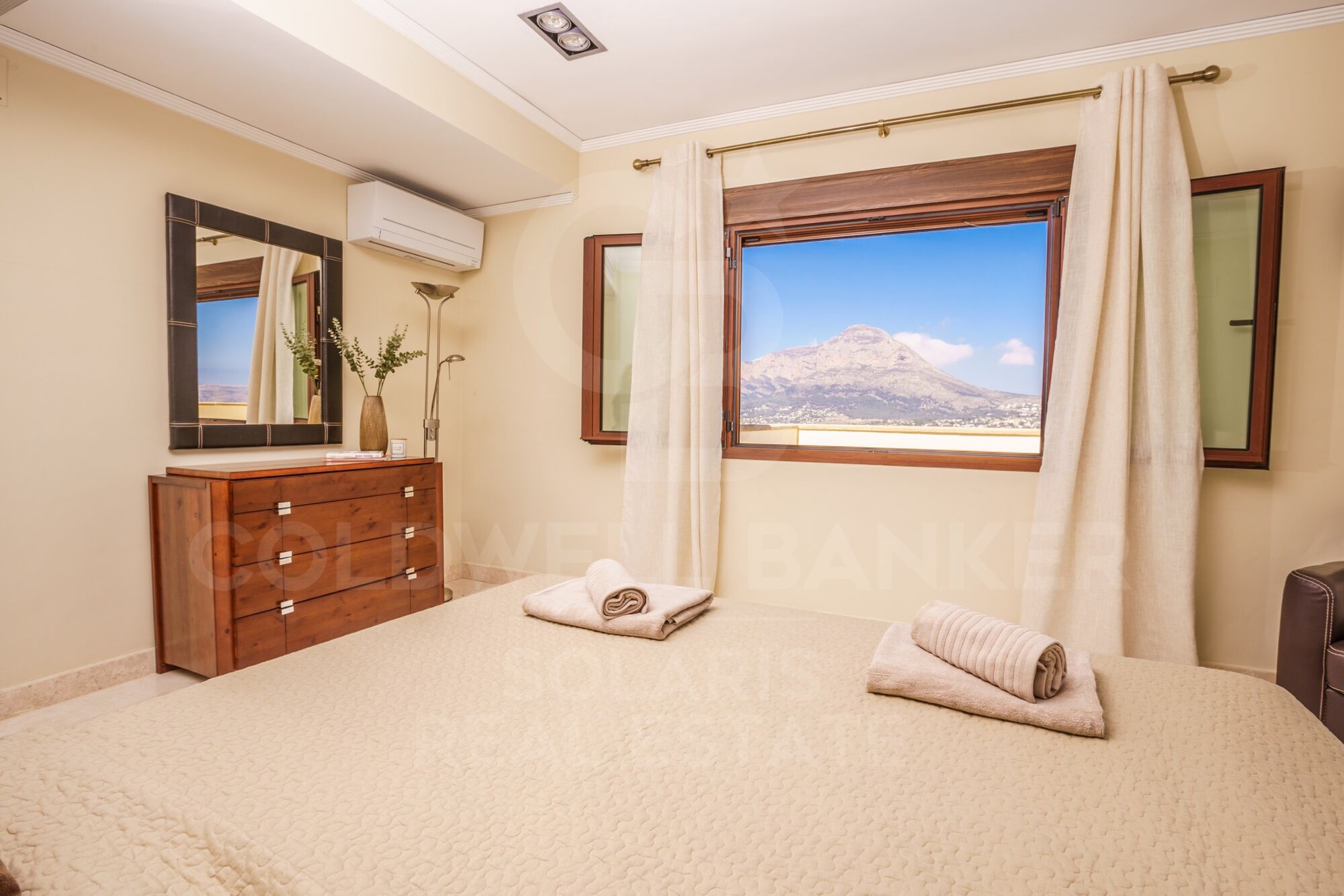 En la primera planta se encuentra otro dormitorio doble, muy espacioso y privado, con baño en suite (con bañera y ducha) y una enorme terraza con vistas espectaculares a Jávea, al mar y al emblemático Montgó.