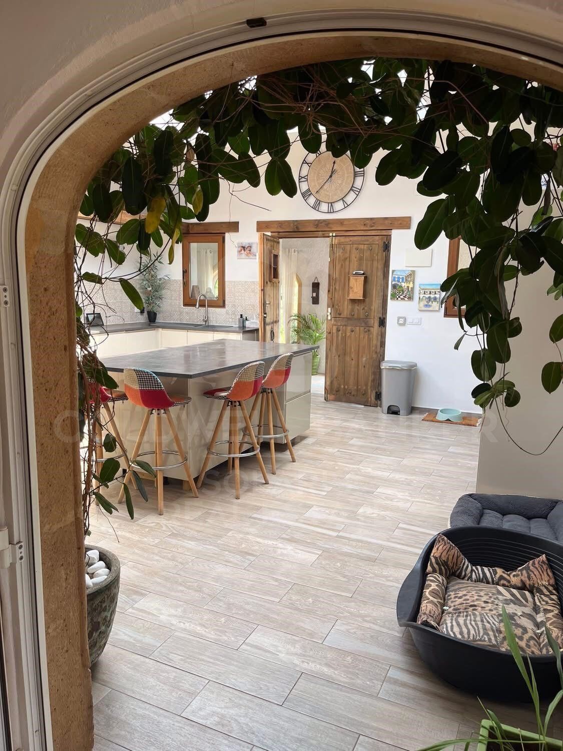 Cocina abierta y acogedora zona de estar.