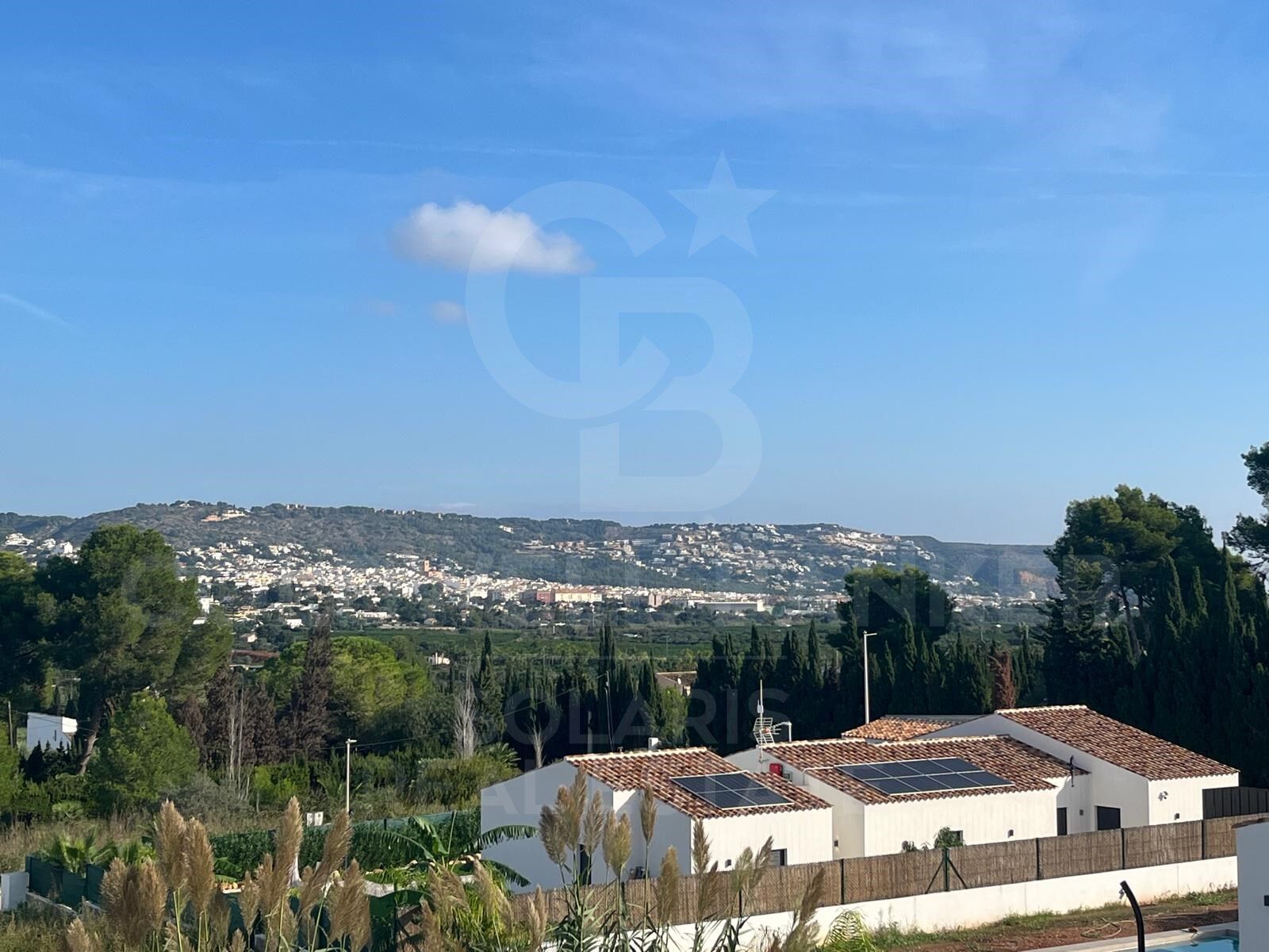 La villa cuenta con una moderna piscina de 4 x 10 metros, perfecta para relajarse y disfrutar del clima mediterráneo. Desde la terraza parcialmente cubierta, se puede disfrutar de vistas completas de la montaña del Montgó, creando un ambiente sereno al aire libre.